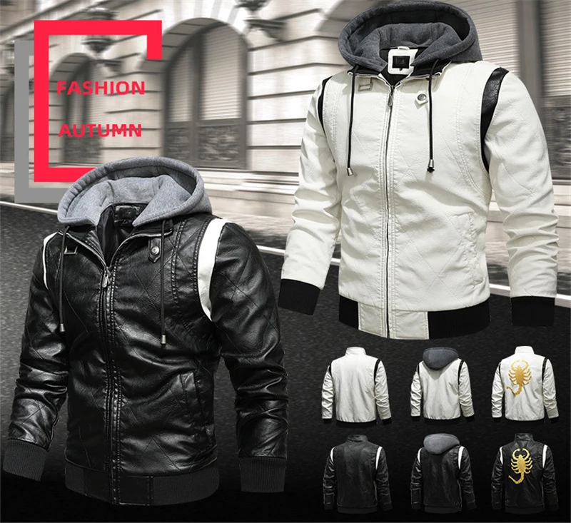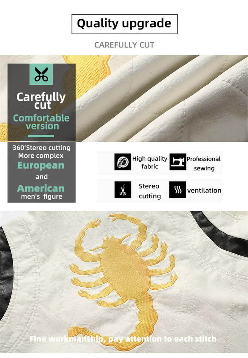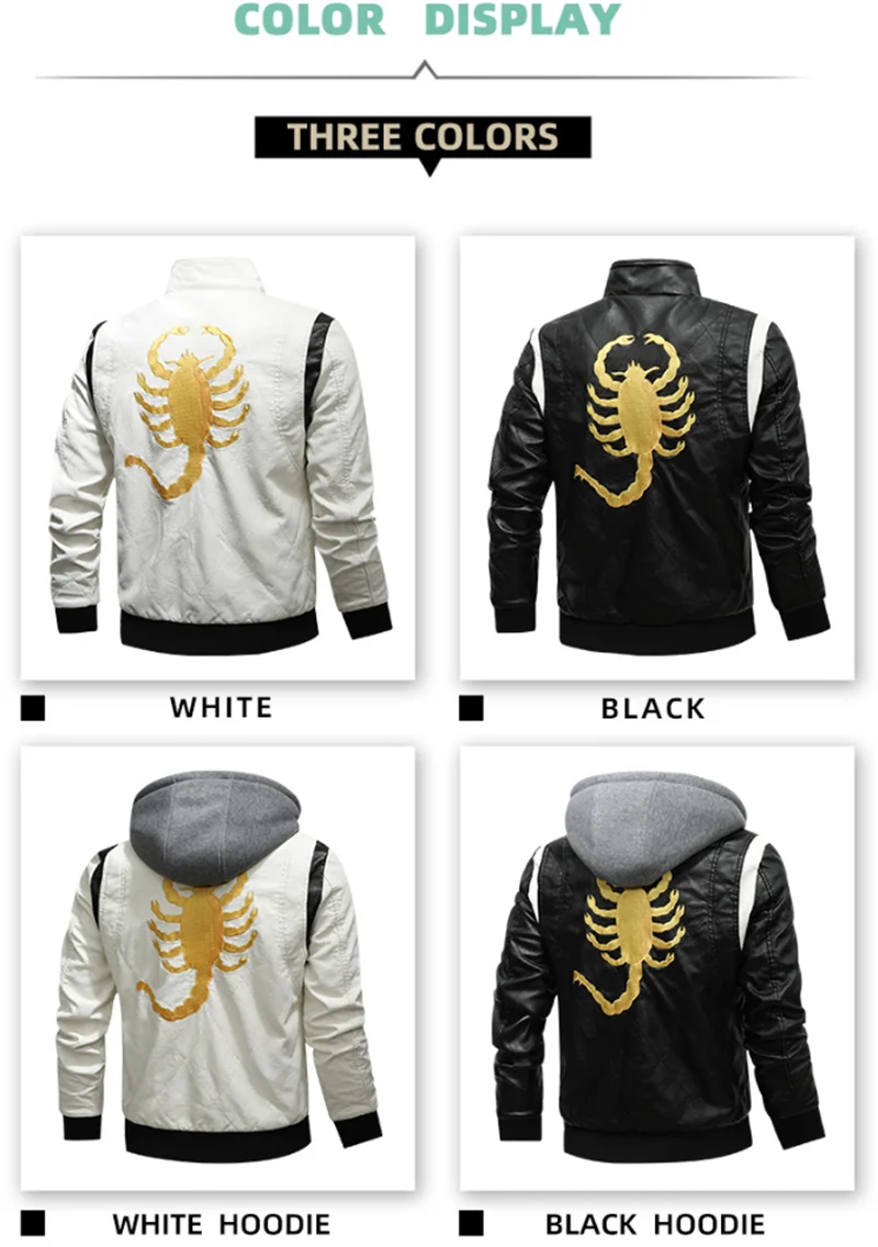 High Quality Men Leather Jacket Scorpion Embroidery Streetwear Windproof Motorcycle Biker Stand Collar Mens PU Leather Jackets