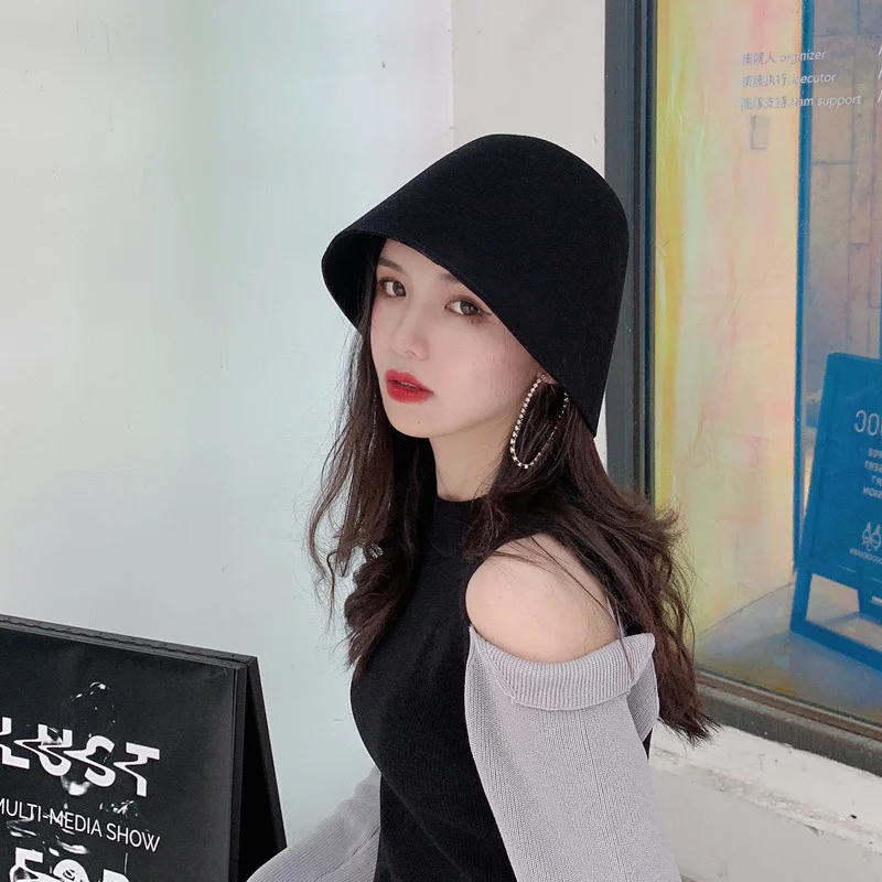 High Quality Wool Fisherman Hat Solid Color Bucket Hats Retro Bell-shaped Basin Cap For Woman Autumn Winter Warm Sun Visors Caps