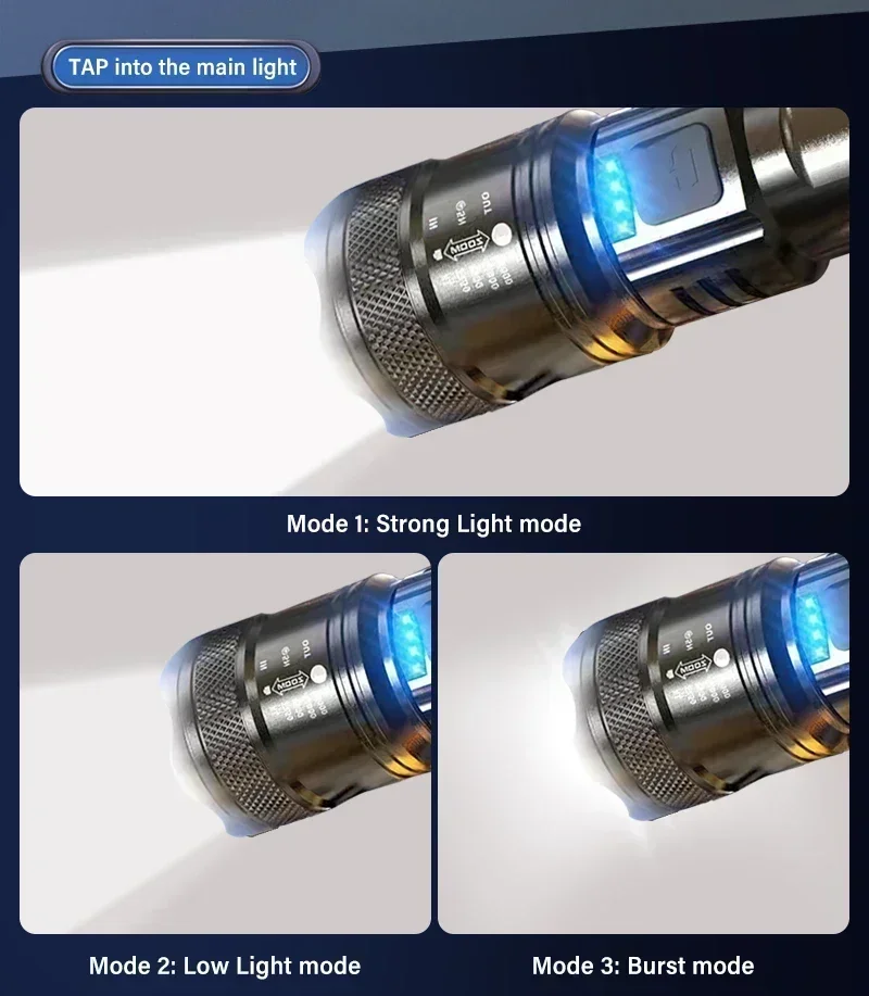 High Strong Power Led Flashlights 2000LM Tactical Torch with Display Light USB Charging Camping Fishing Emergency Zoom Lantern