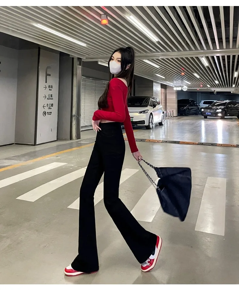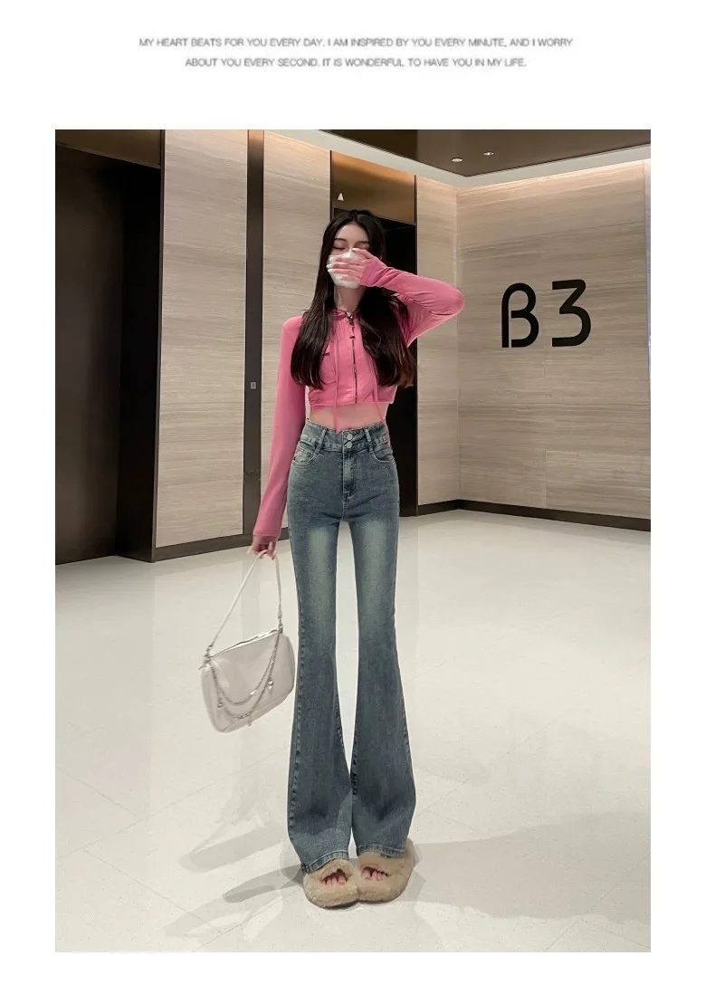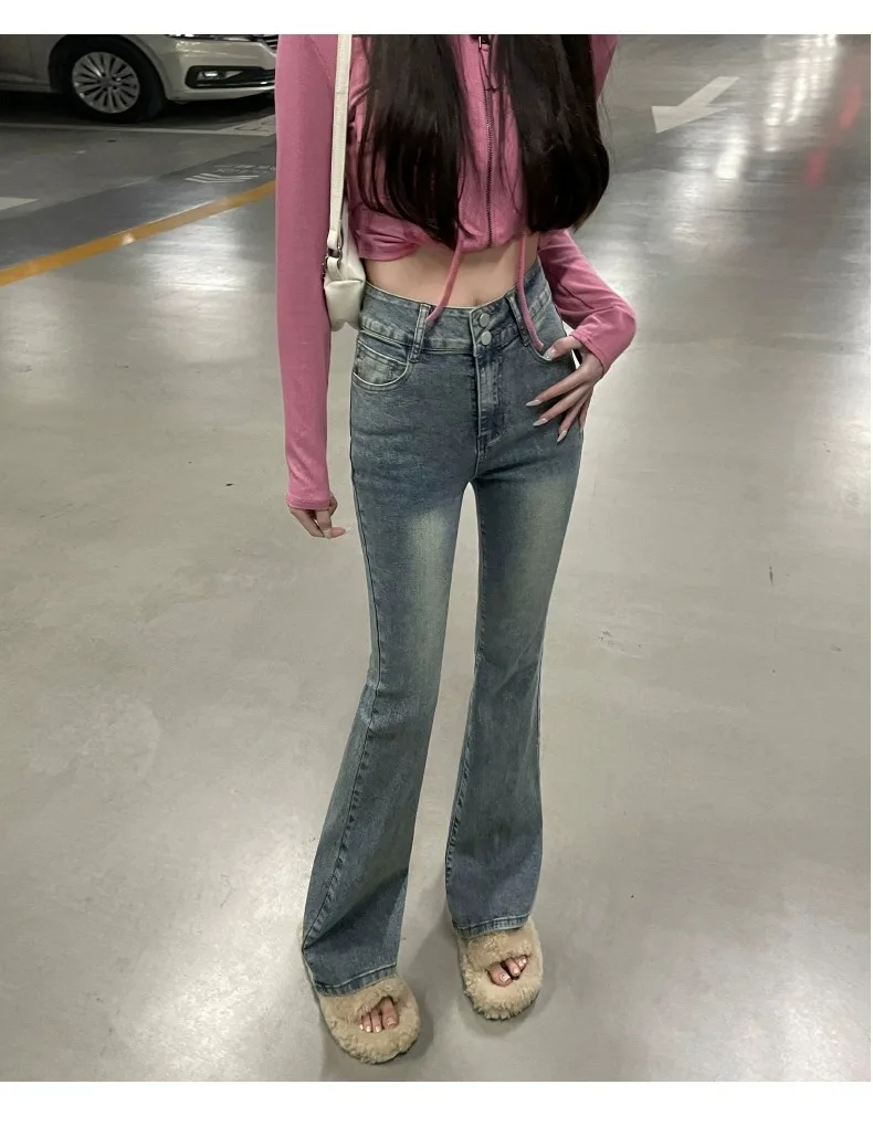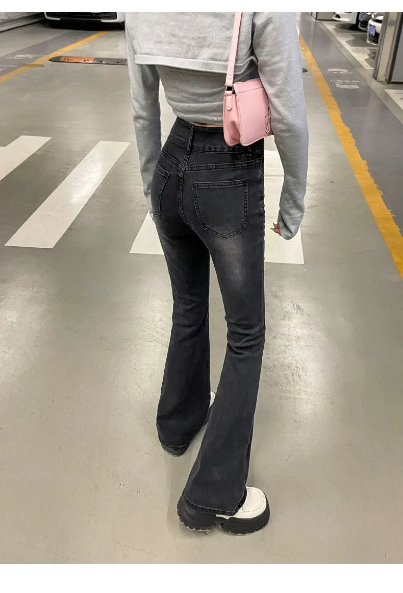 High Waist Fce Lined Thiened Autumn Winter American Bla ey Micro Flared Jeans Women Slimming Legging Hoof Pants
