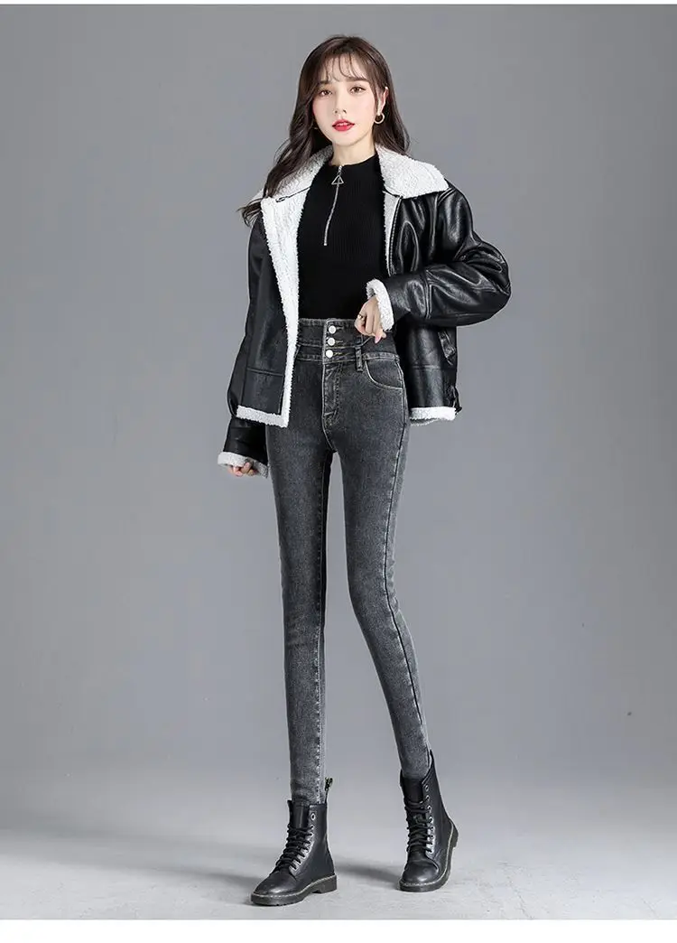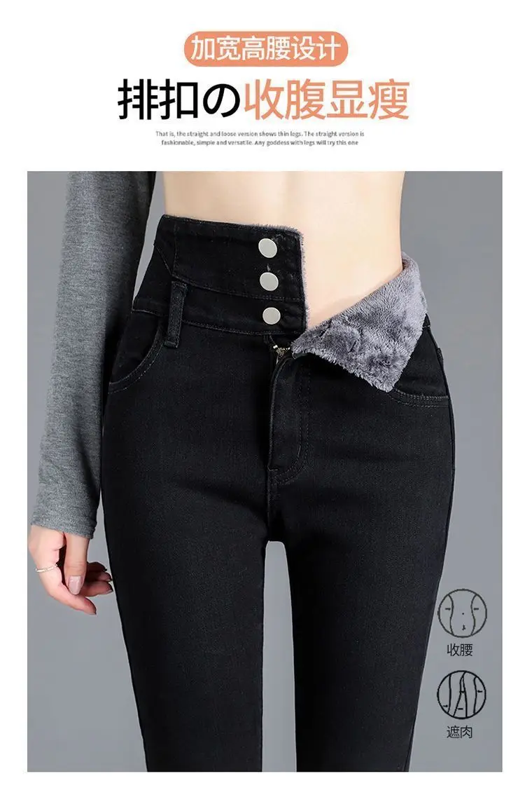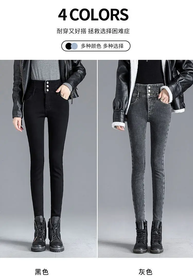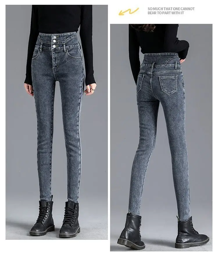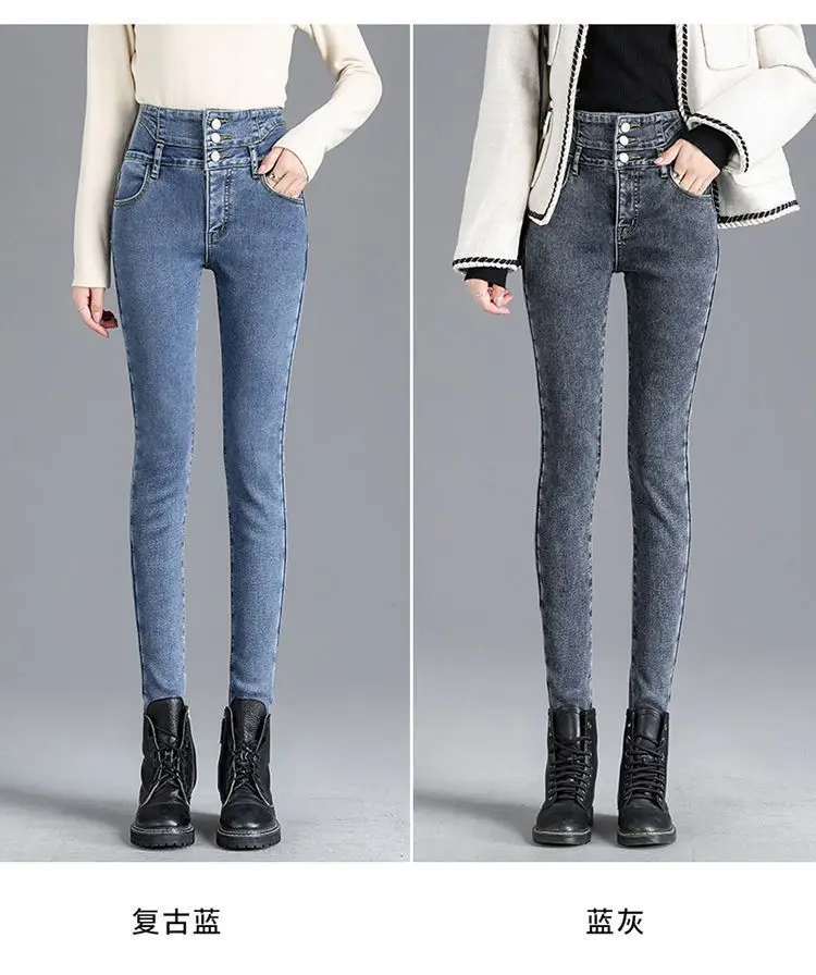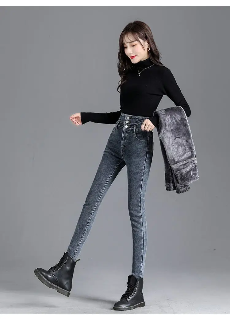 High Waist Slim Fit Fleece Lined Thickened Pencil Long Jeans Women's Autumn Winter New Style Fashionable And Elegant