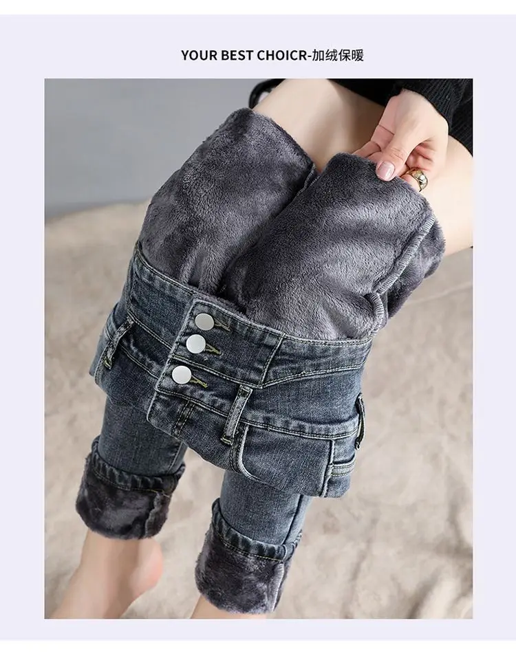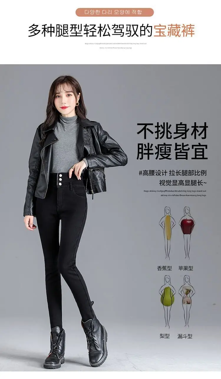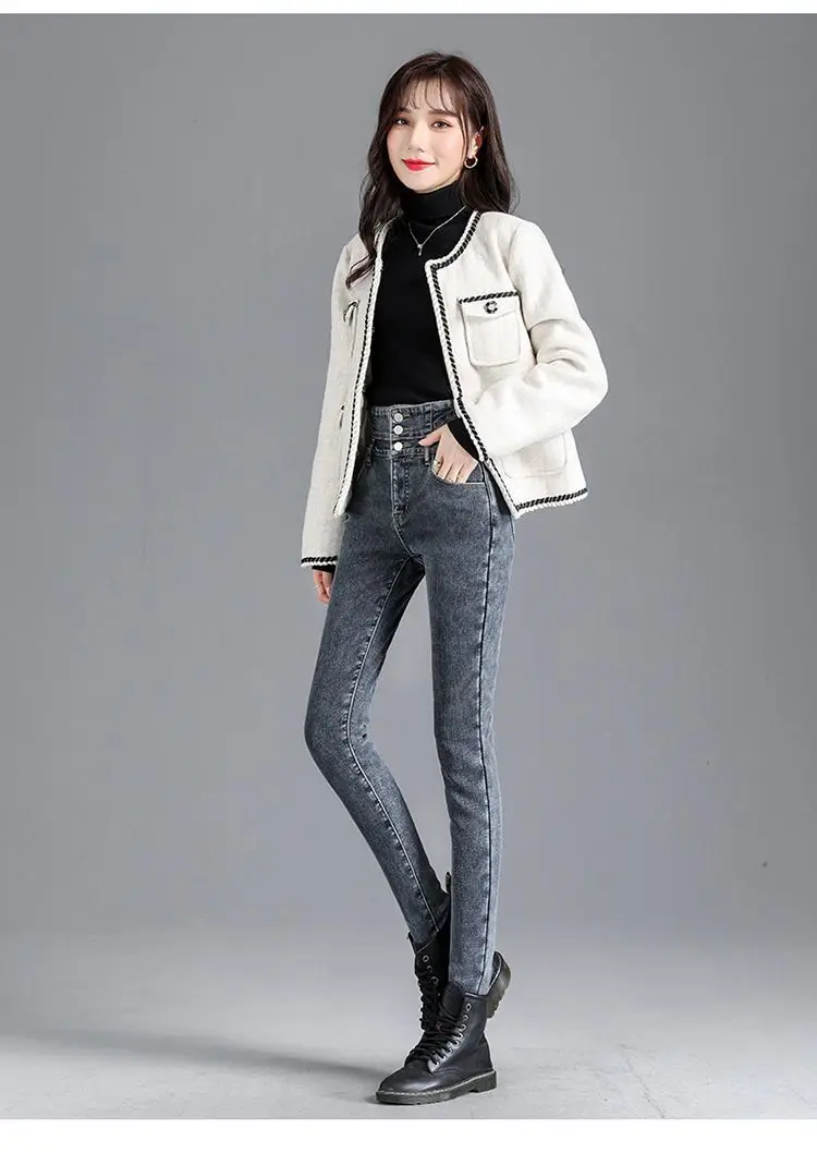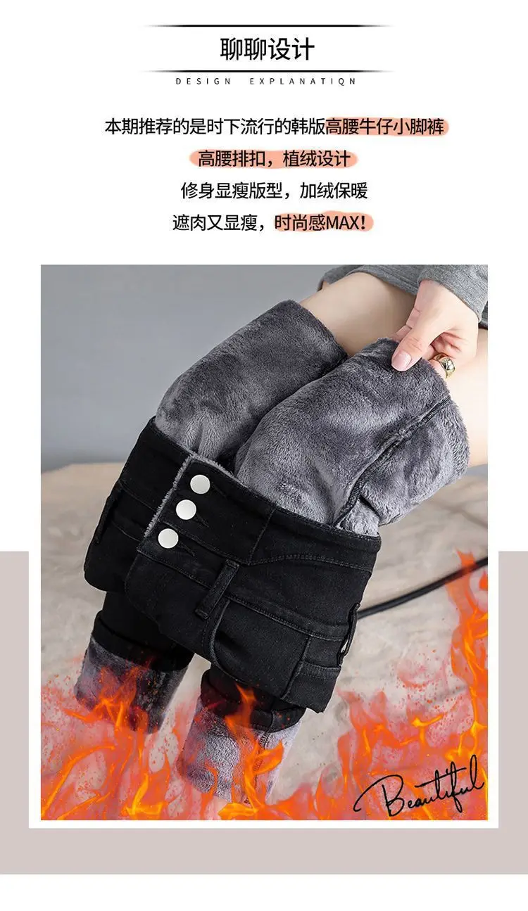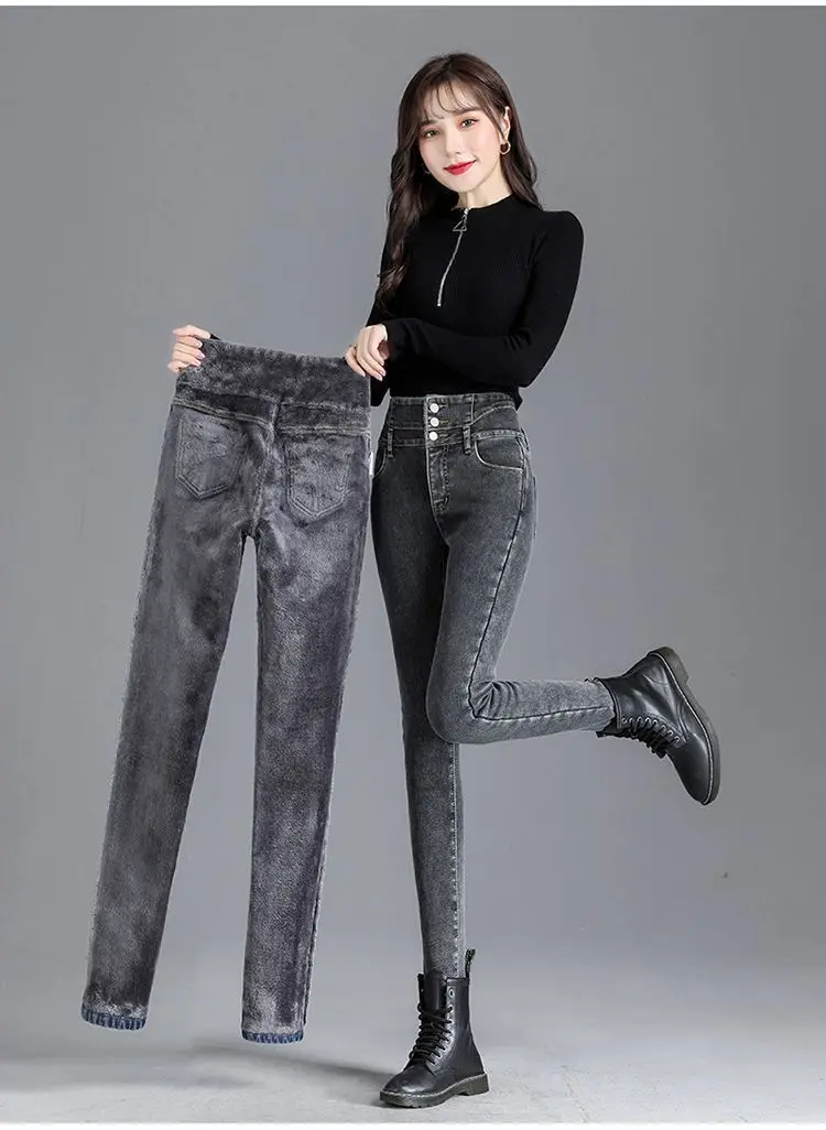 High Waist Slim Fit Fleece Lined Thickened Pencil Long Jeans Women's Autumn Winter New Style Fashionable And Elegant