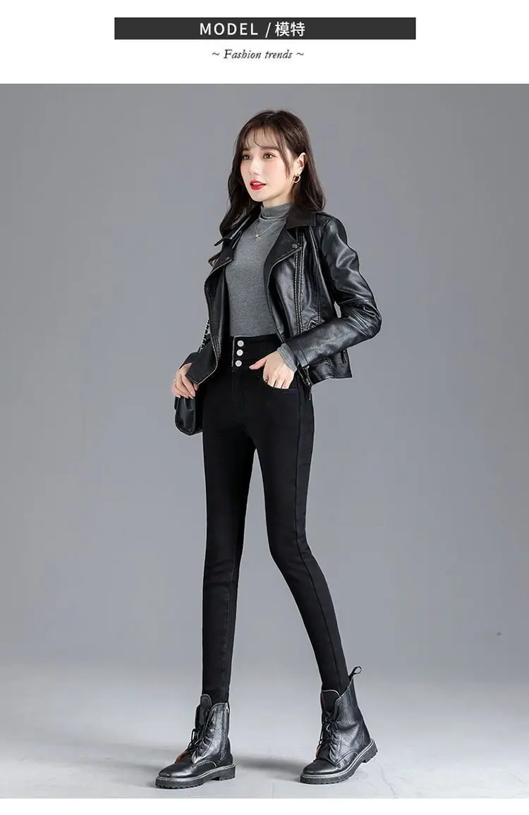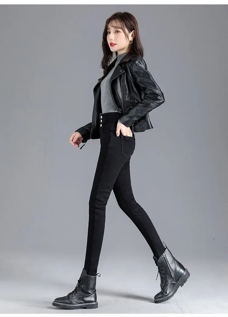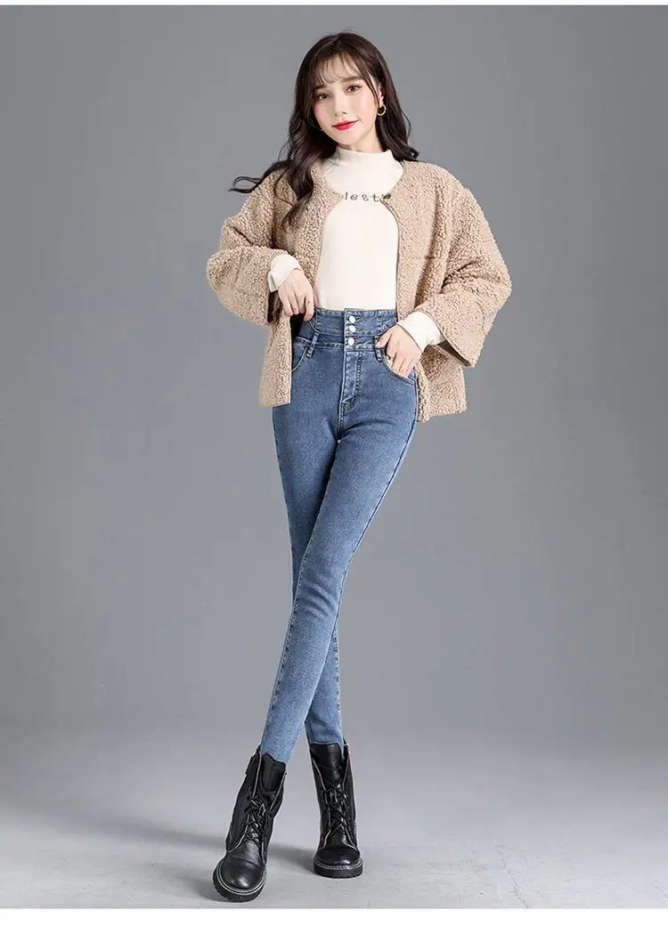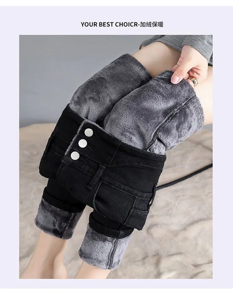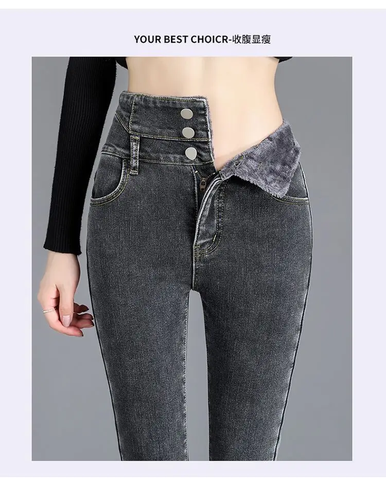 High Waist Slim Fit Fleece Lined Thickened Pencil Long Jeans Women's Autumn Winter New Style Fashionable And Elegant