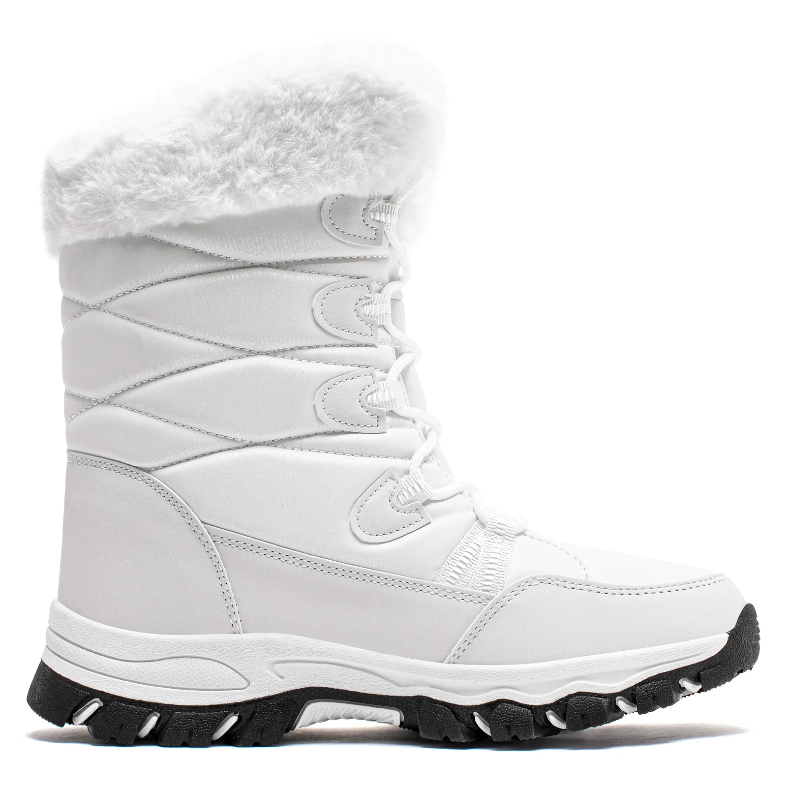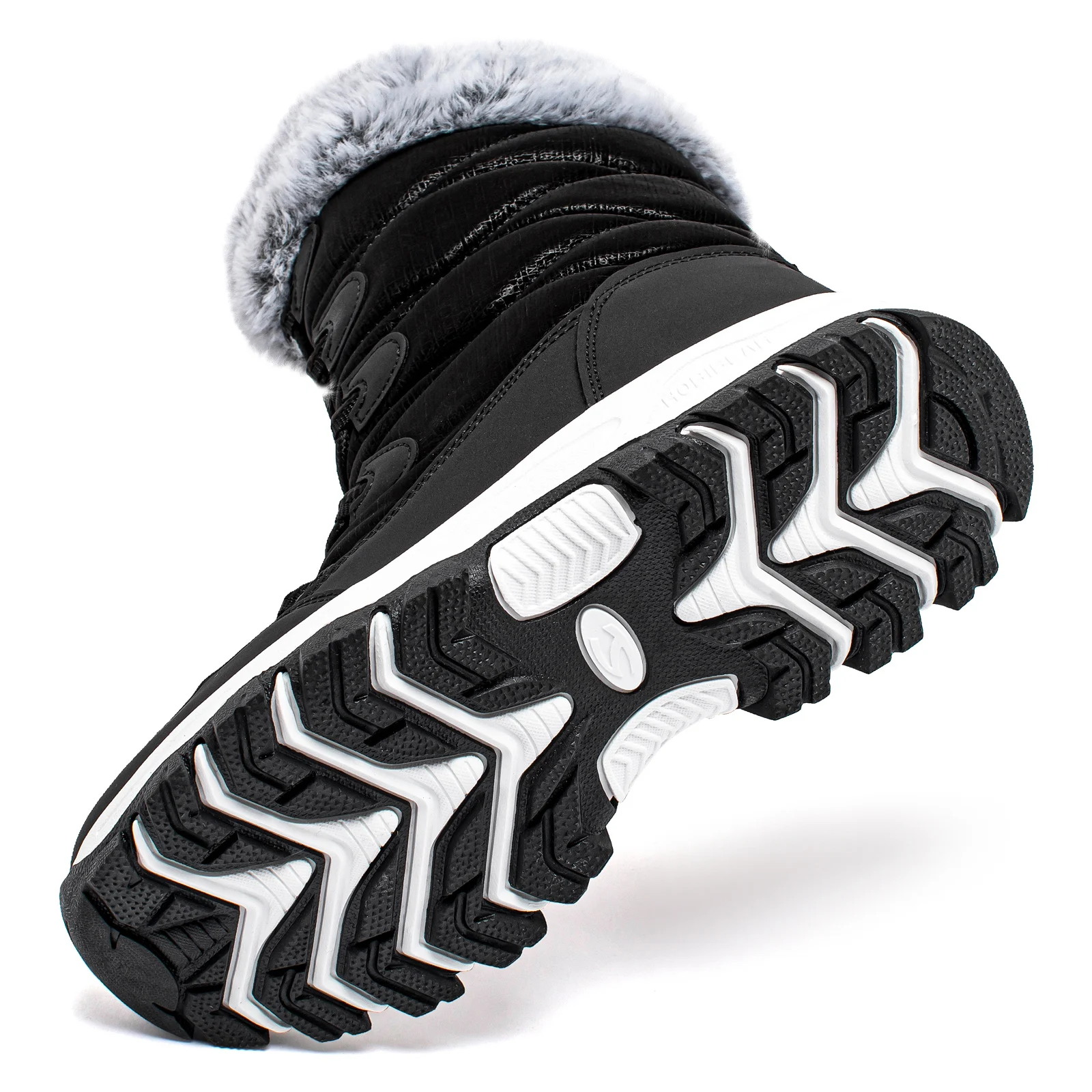 HOBIBEAR Womens Winter Snow Boots Waterproof Outdoor Warm Faux Fur Lined Shoes Non-Slip Lace-Up Boots