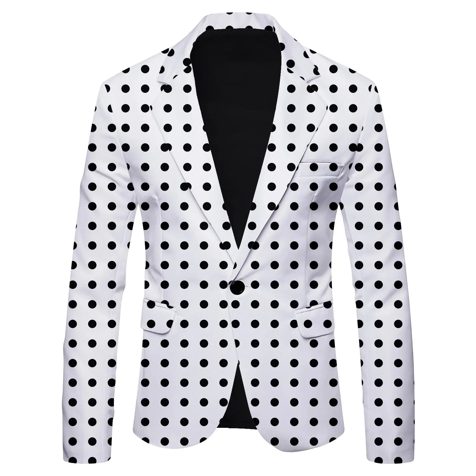 HOO 2025 New Men's Polka Dot Print Leisure blazer Jacket British Fashion Slim-Fitting blazer Pattern Customization