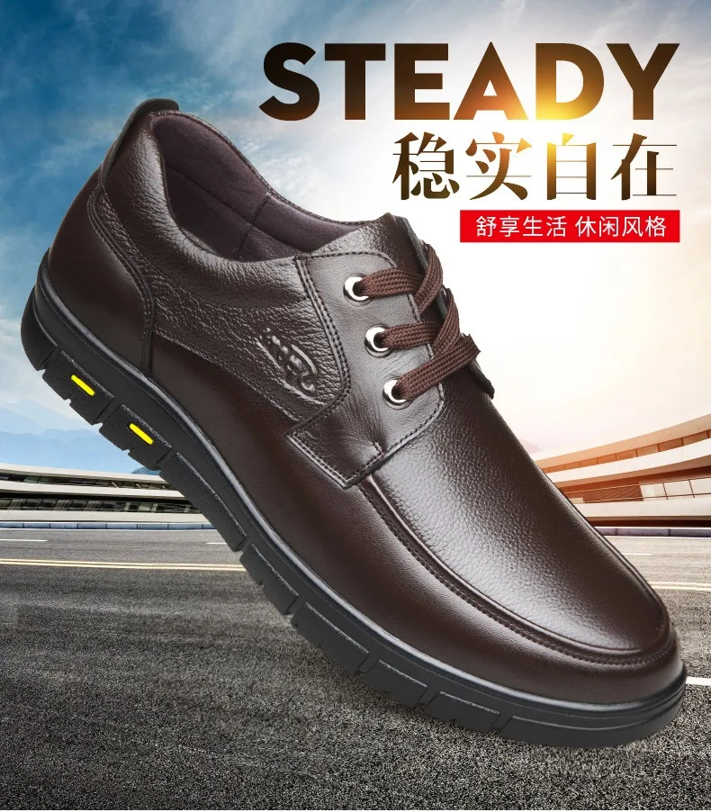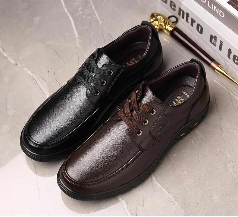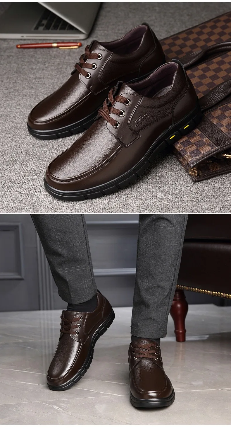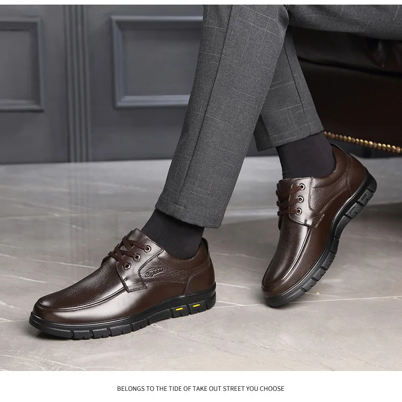 Hot Sale Men Genuine Leather Casual Shoes Soft Sole Lace-up Luxury Brand Middle-aged Old Man Dad Lightweight Loafers Shoes