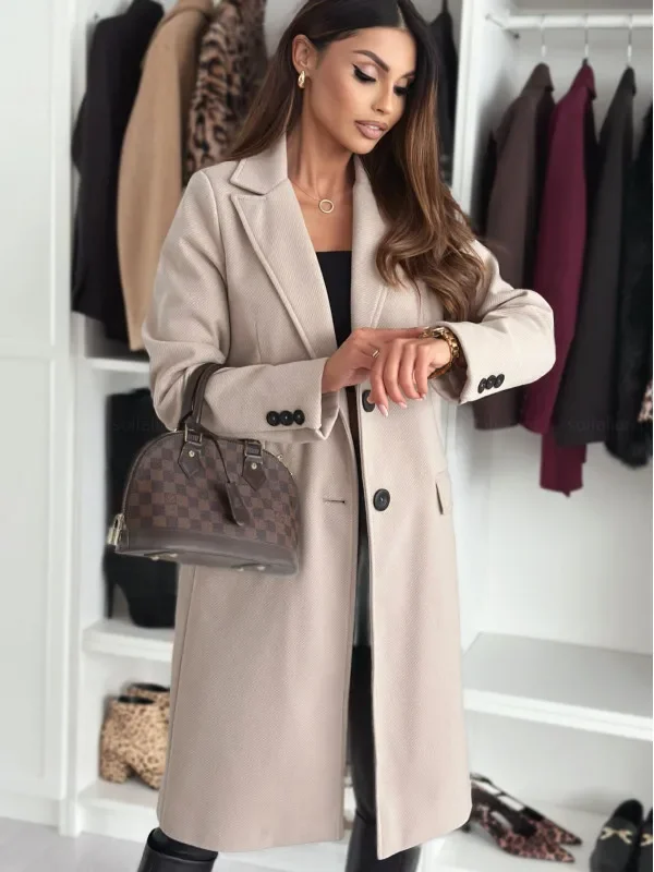 Hot Sale Of The Season Autumn Winter Simple Long Sleeve Solid Color Single Button Woolen Coat Women's Fashionable Elegant Outerw