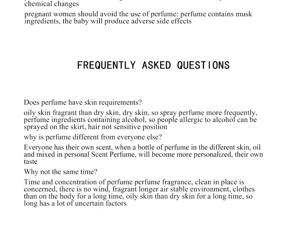 About 20 cm away from the body, spray the perfume evenly and fall on the body's wrists, behind the ears, on the side of the neck, on the collarbone and other parts of the body with high temperature, and the aroma will naturally spread with the body temperature.