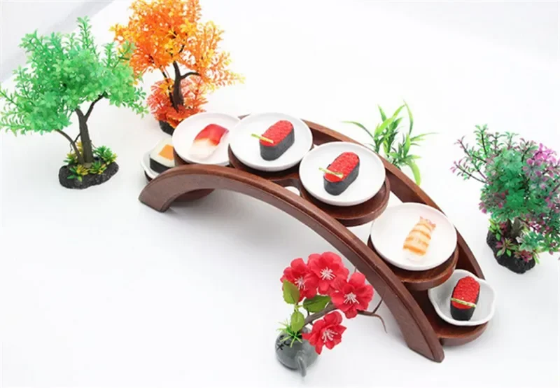 Hotpot Arch Bridge Plate Sushi Bridge Boat Tableware Dessert Wooden Dim Sum Plate Sushi Tray Japanese Kitchen Bento Sushi Plate