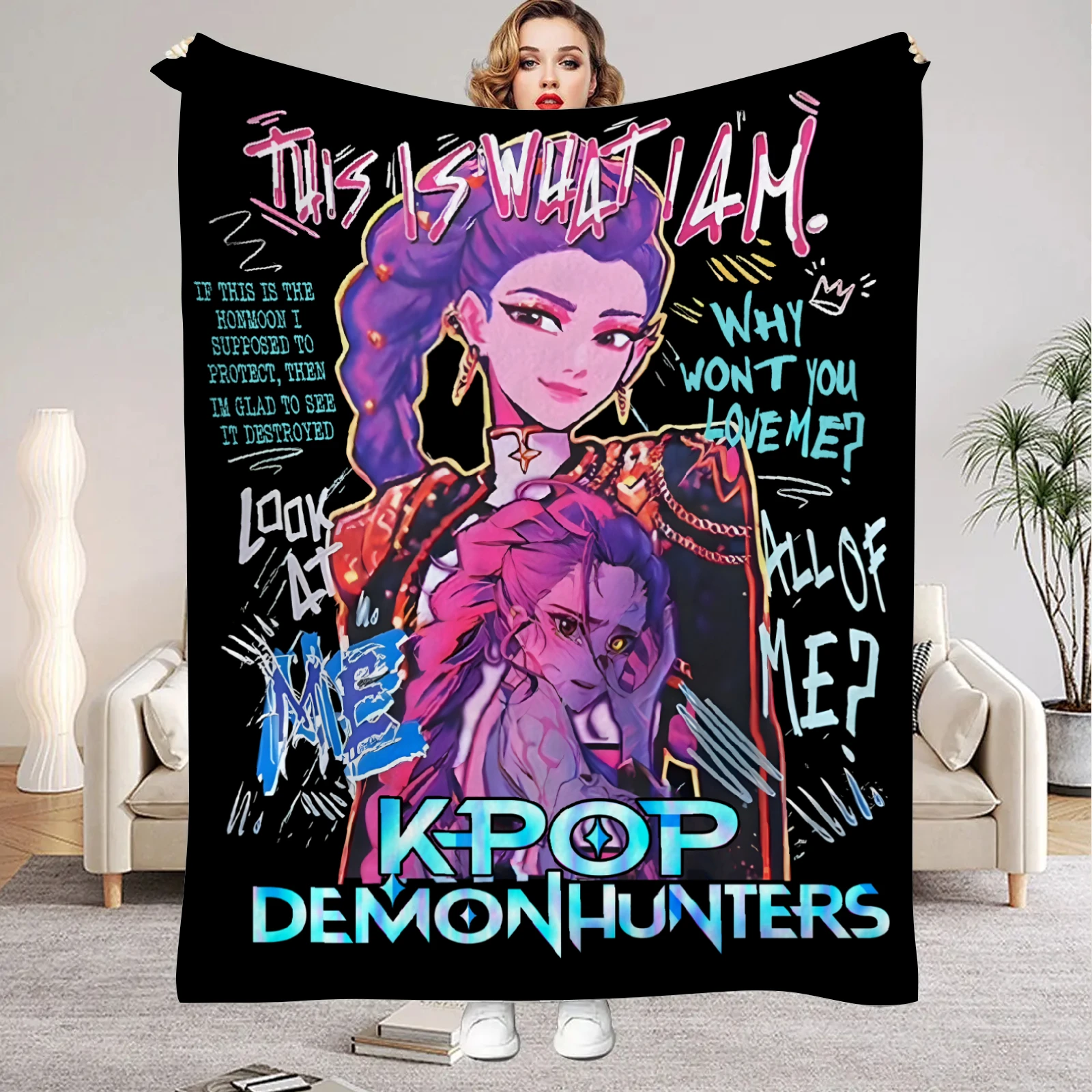 Huntrix Blankets K pop Demon Hunters Zoey Rumi Mira Soft Warm Throw Blanket Winter Kids Couch Bed Fluffy Bedspread