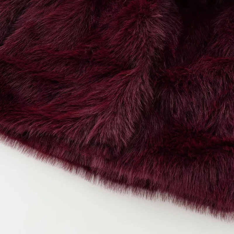 HXAO Women's Fur Coat Women 2024 Plush Burgundy Bomber Jacket Solid Crop Long Sleeve Jacket Warm Winter Coats Woman Casual Coats
