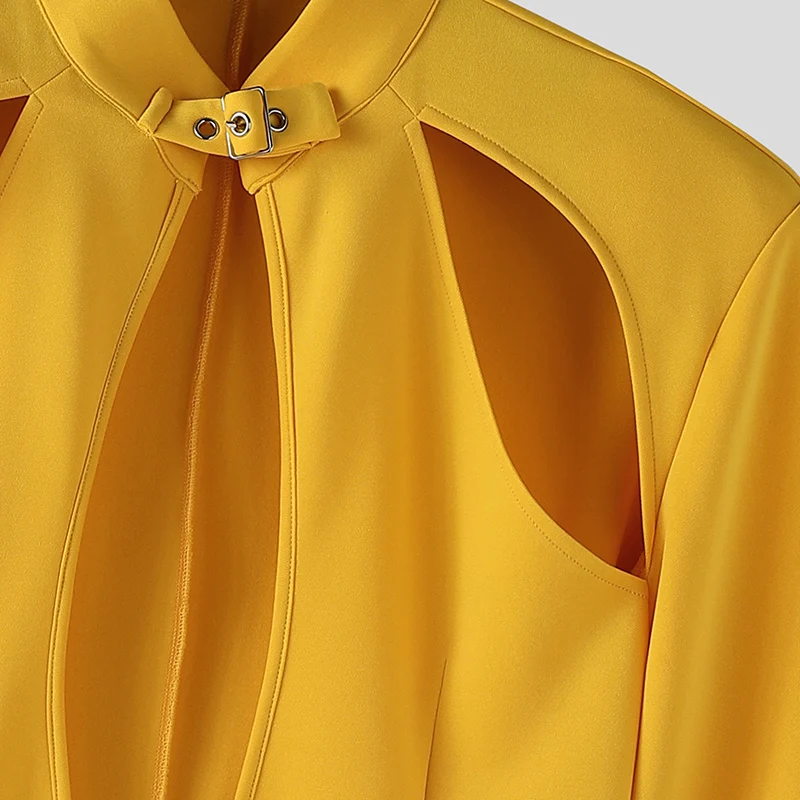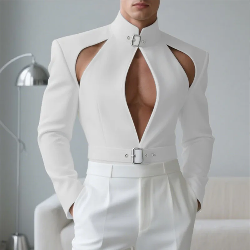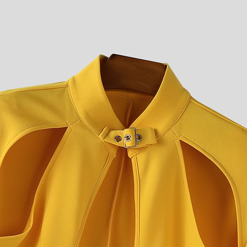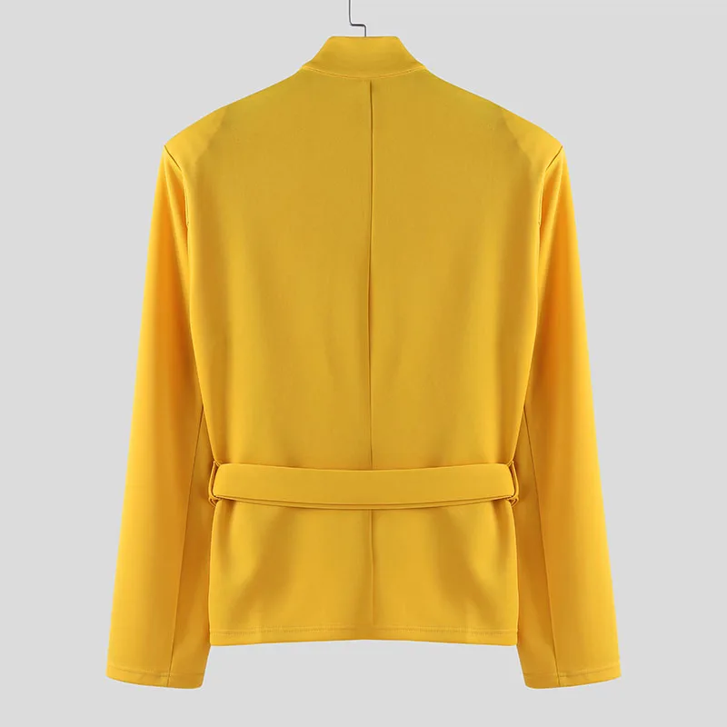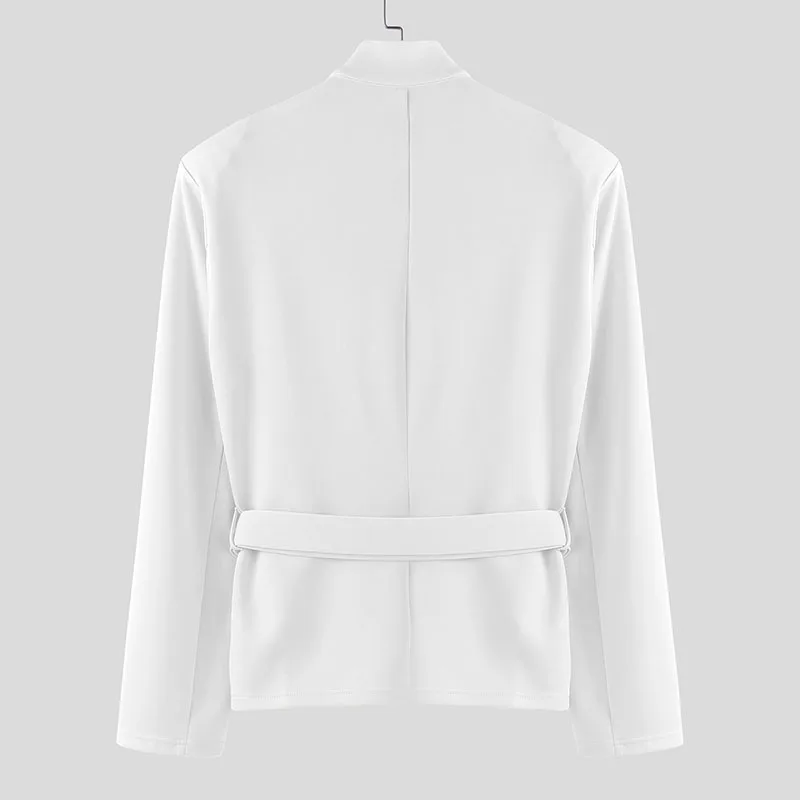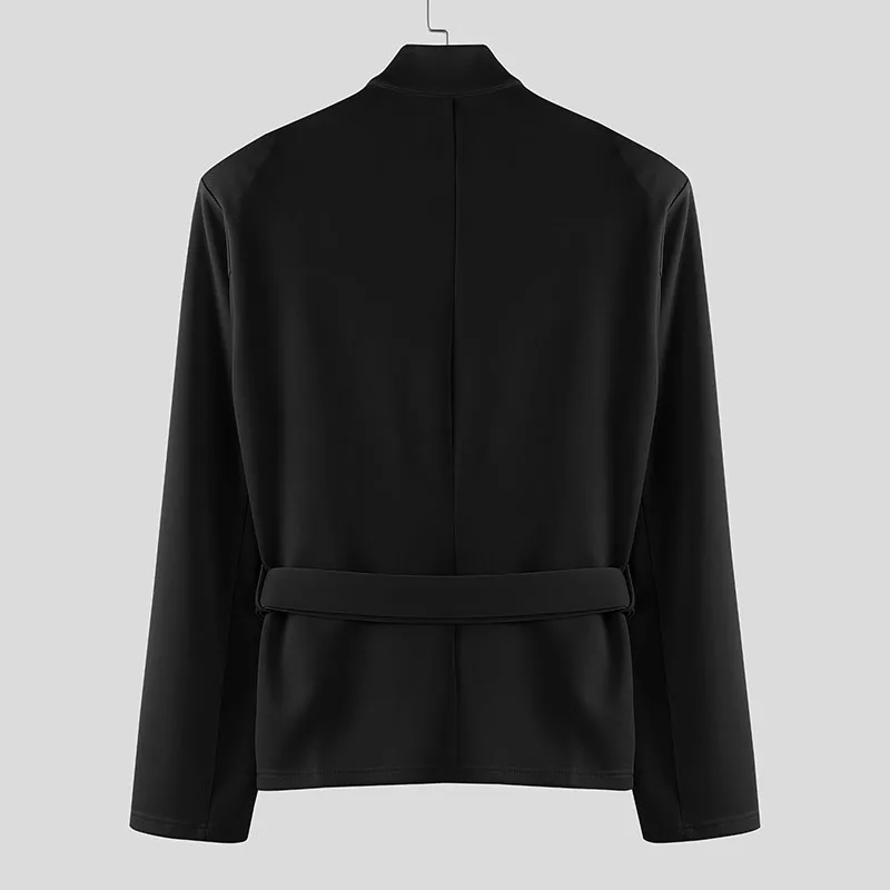 INCERUN Men Blazer Solid Stand Collar Long Sleeve Hollow Out Male Suit Streetwear Personality Fashion Casual Blazer With Belt