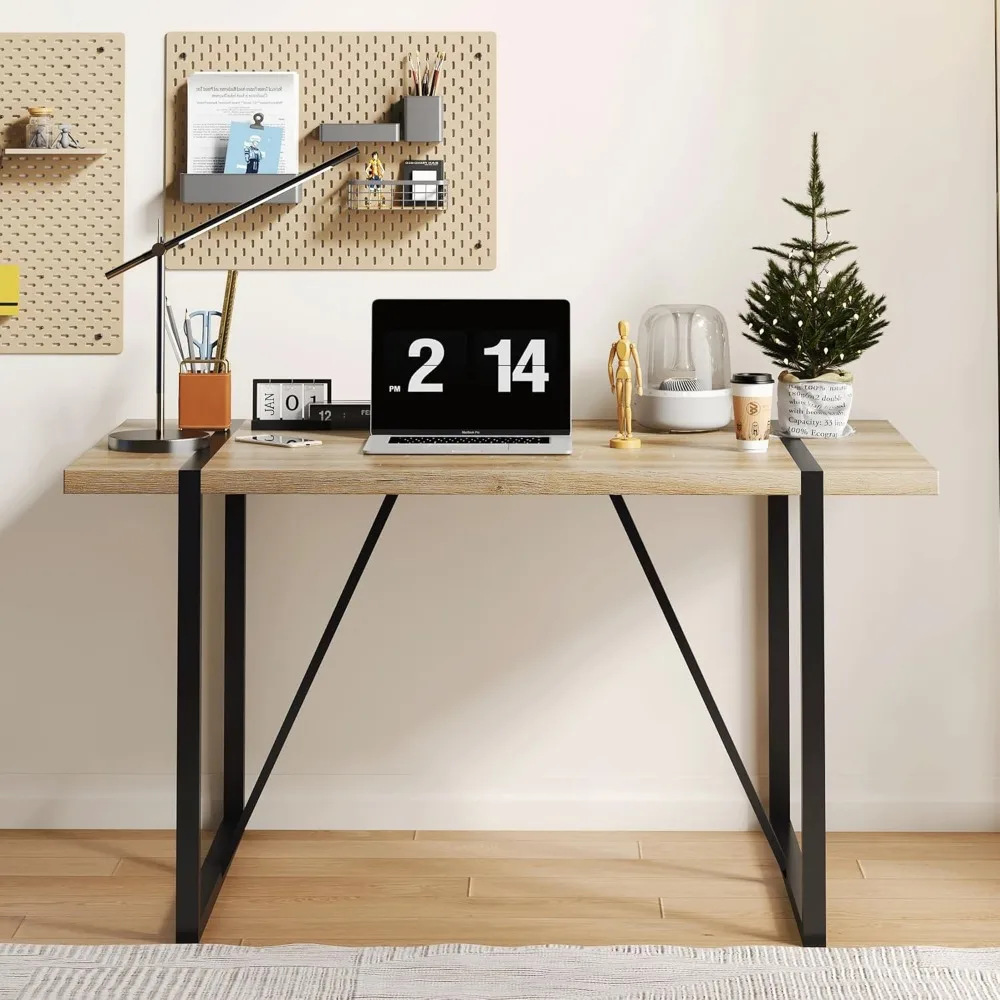 Industrial Style Rectangular MDF Dining Table for 4-6, Brown Wood Finish with Black Metal Legs