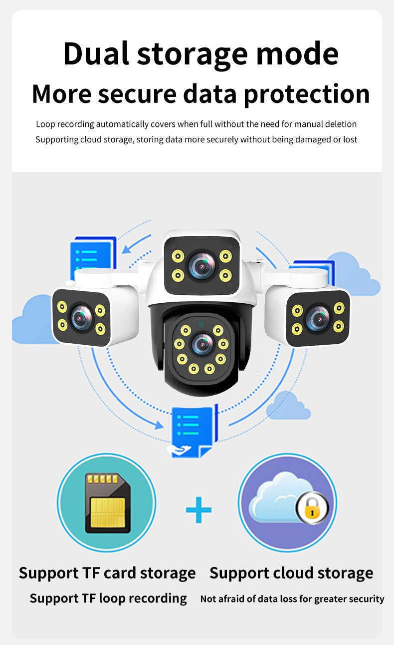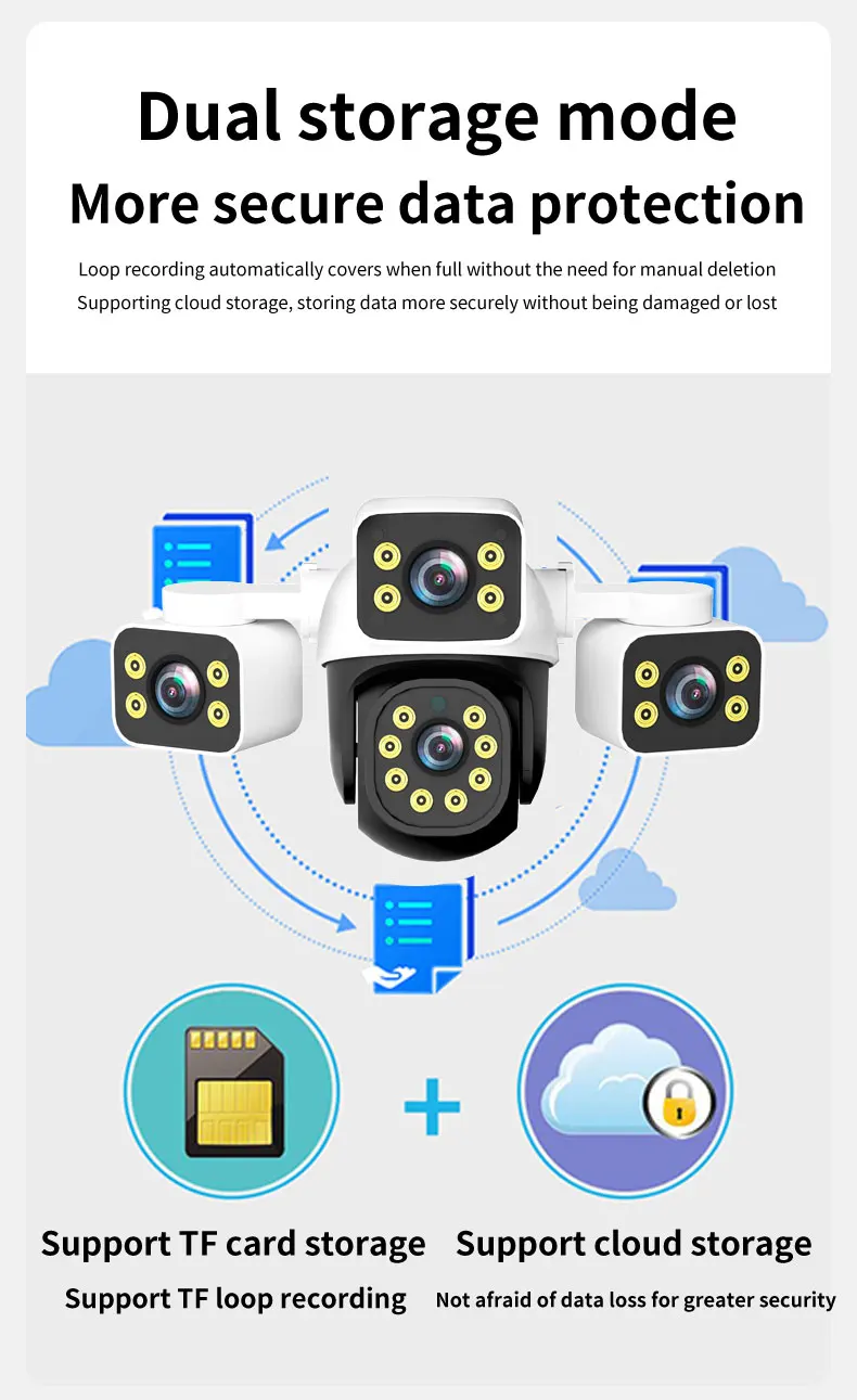 -Support H265 video compression format, three-stream output, TF card storage (maximum support 256GB), cloud storage (need to buy)