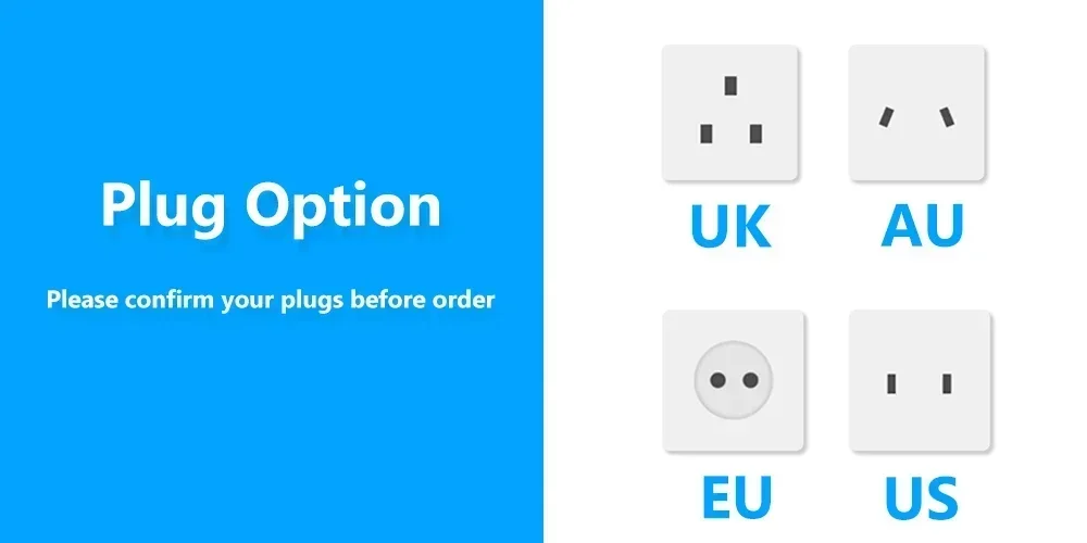 *For the power adapter plug options, EU/US/UK/AU optional