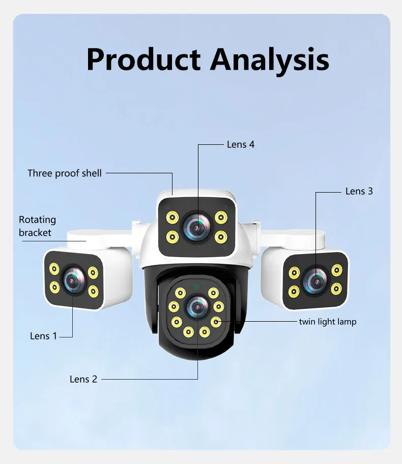 -New panoramic fixed point monitoring Three-lens, Three-sensor, Three-screen design,Two Lens Two Screens let you see more details And Option