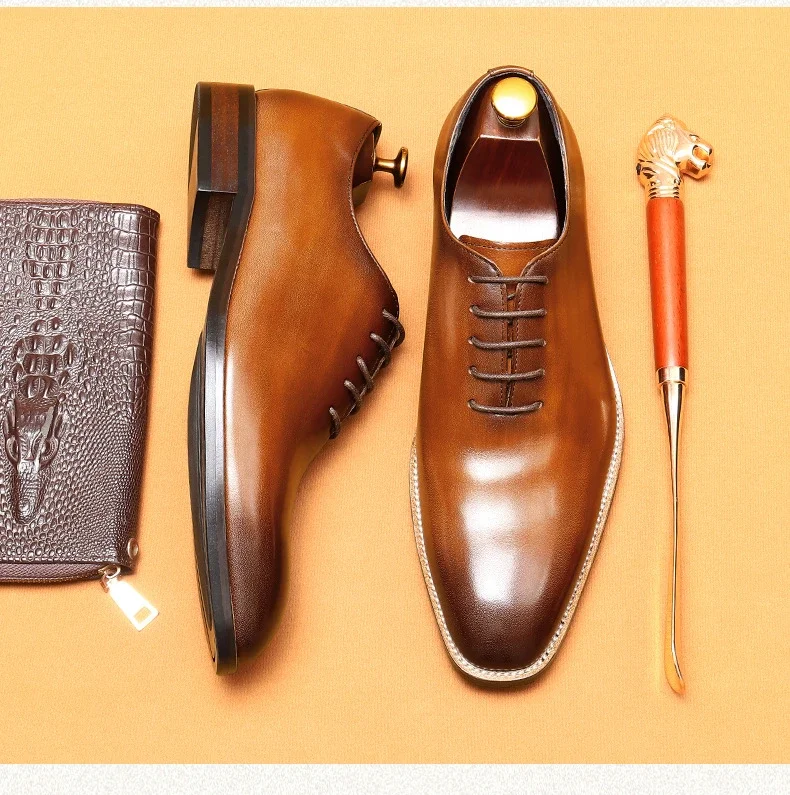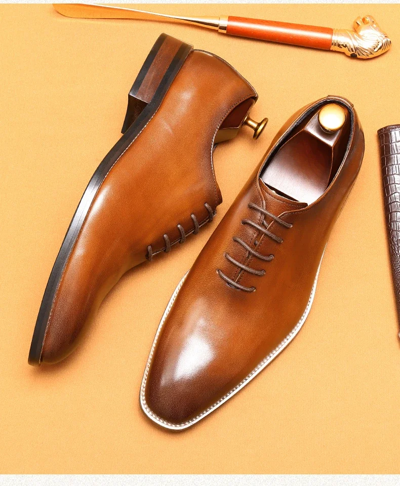 Italian Men's Formal Shoes Luxury Genuine Leather Handmade Quality Comfortable Elegant Black Wedding Social Oxfords Shoes Man