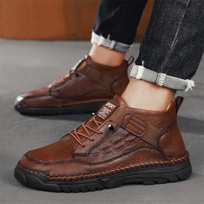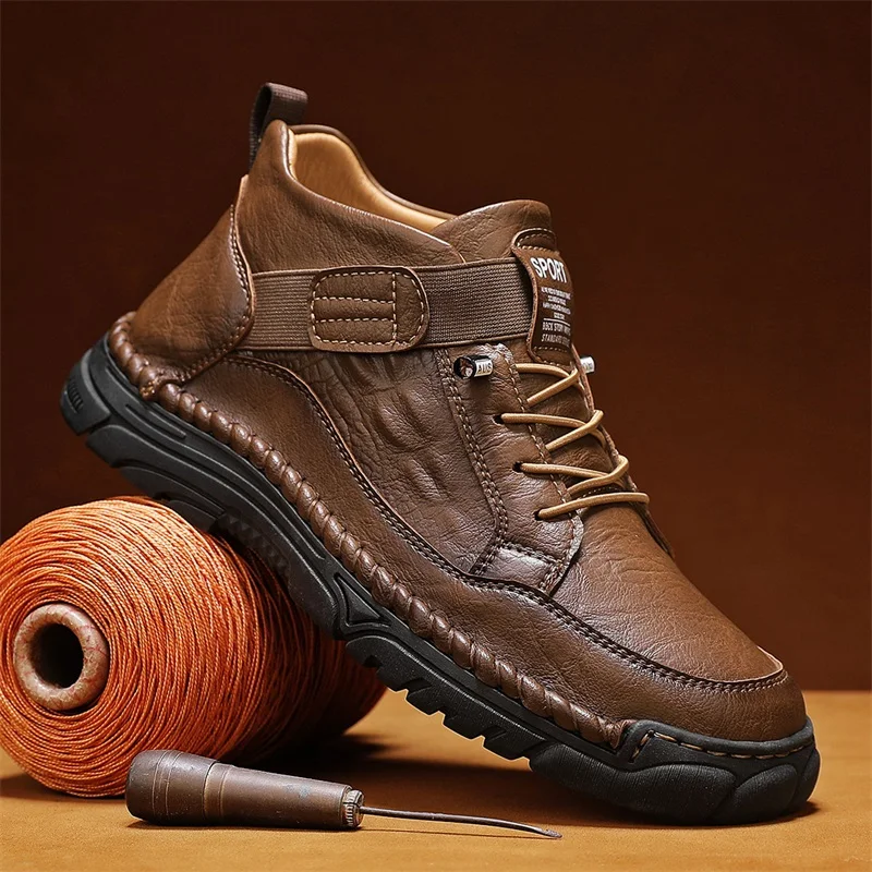 Italian Men's Outdoor Walking Boots Casual Leather Comfy Designer Driving Flats Fashion Vintage Handmade Thick Bottom Sneakers