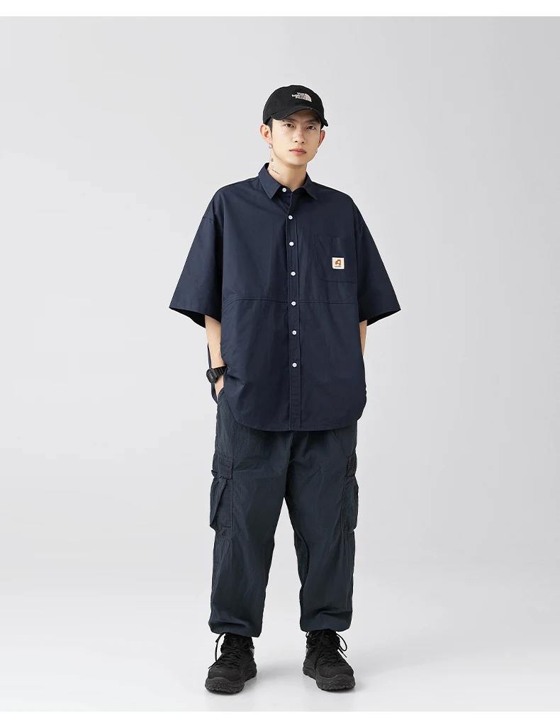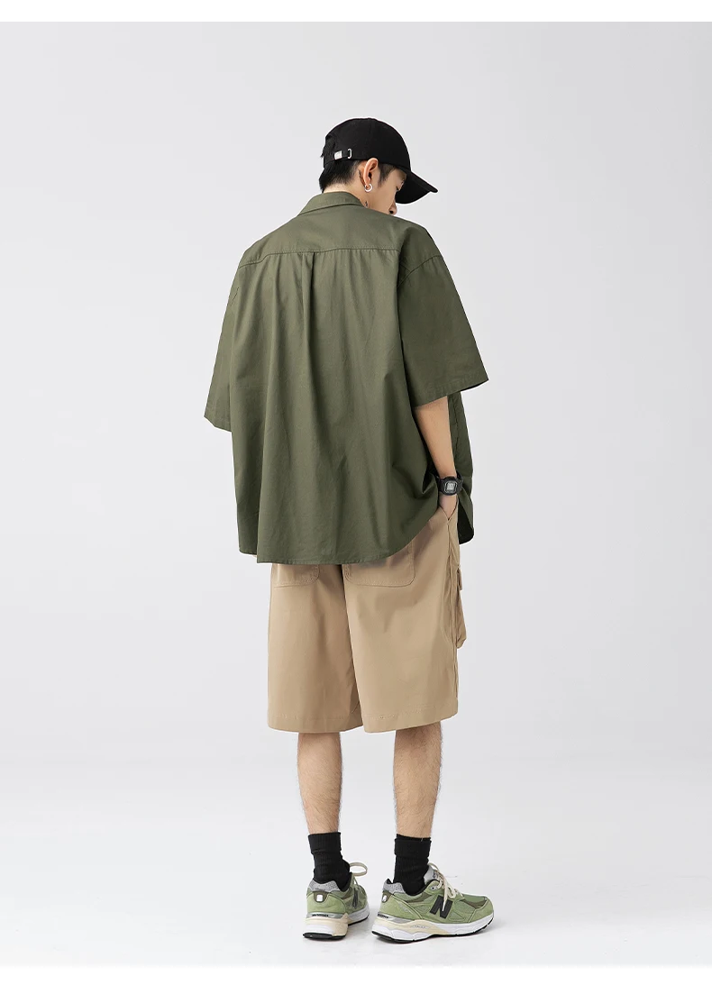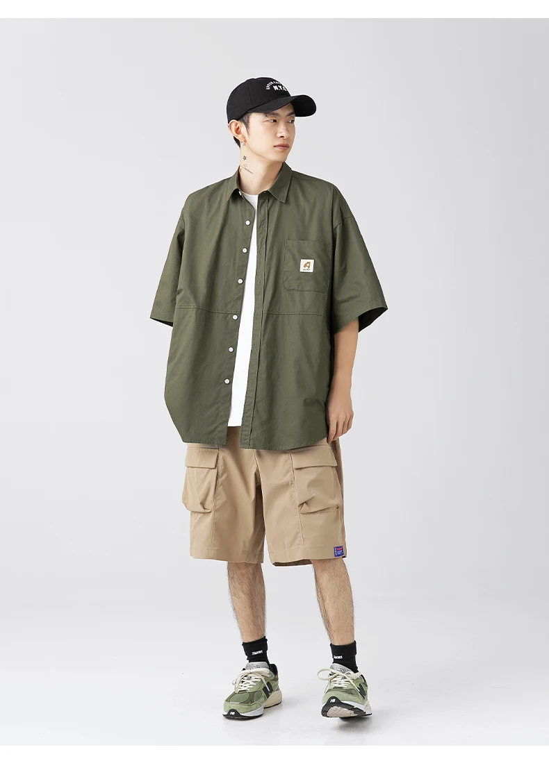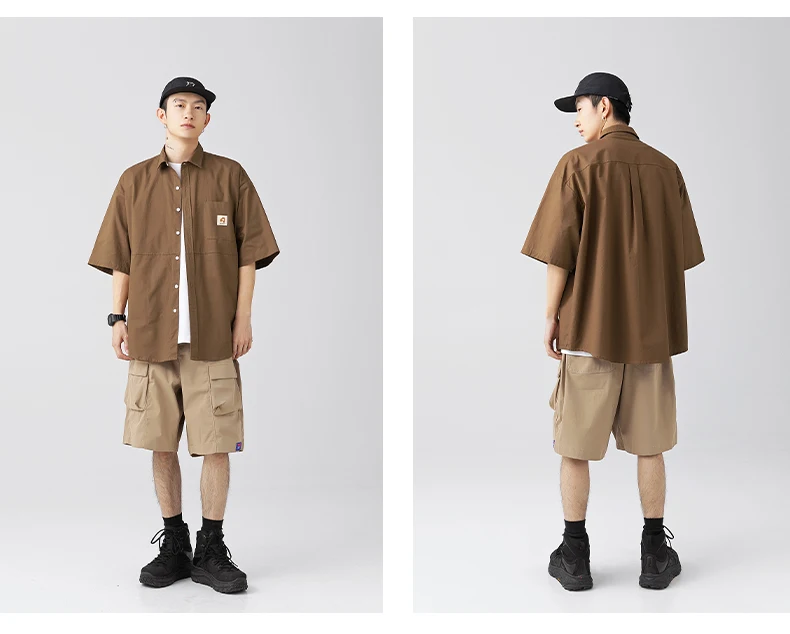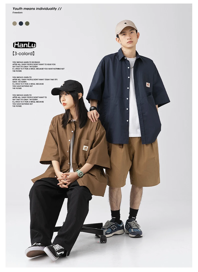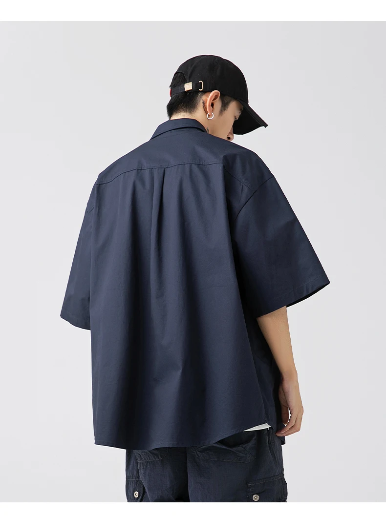 Japanese work clothes short-sleeved shirt Men's spring and summer new loose cotton couple Oversized shirt Street fashion for men and women