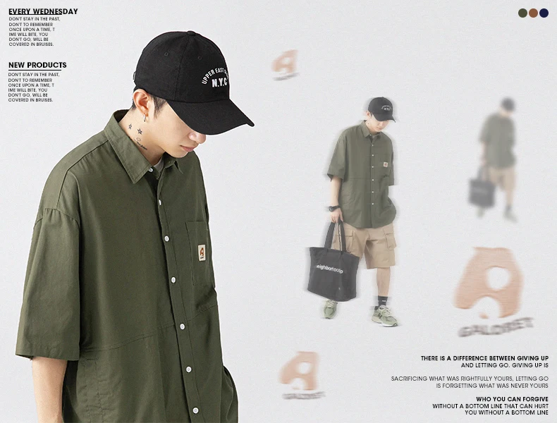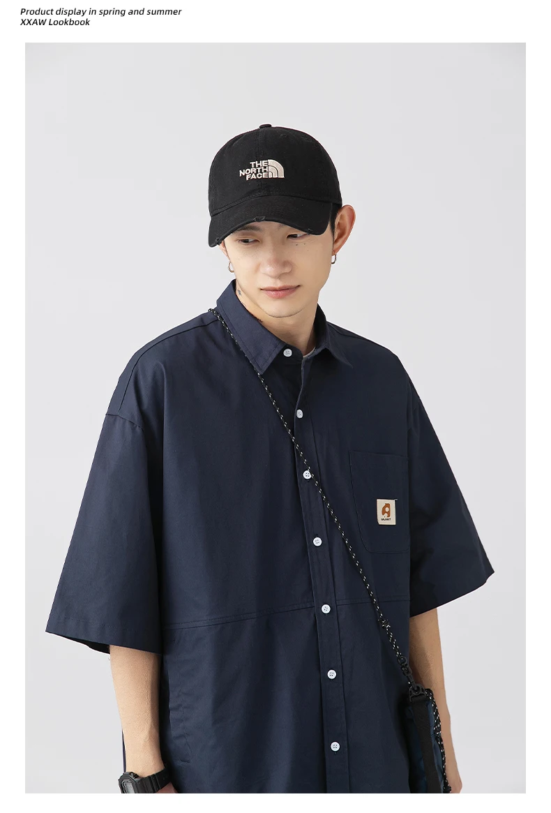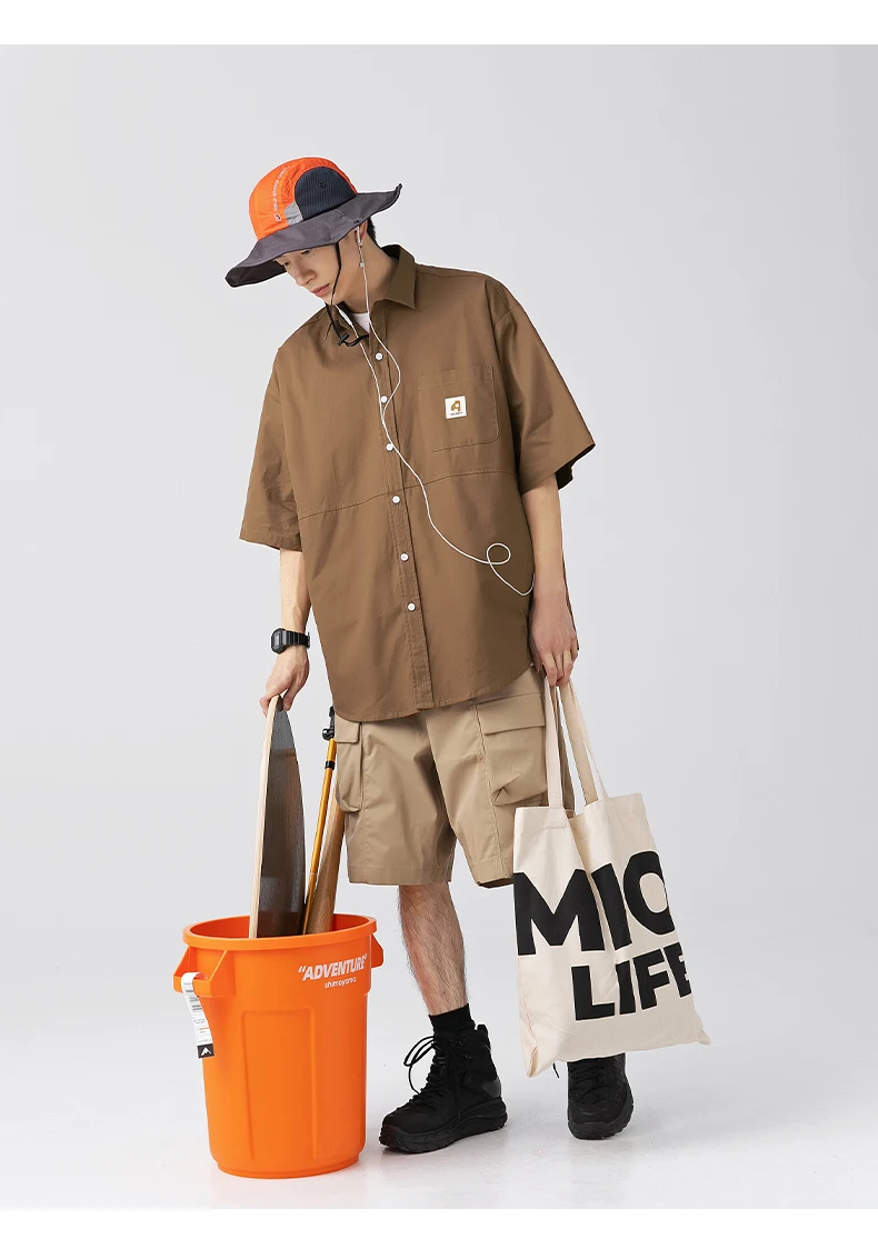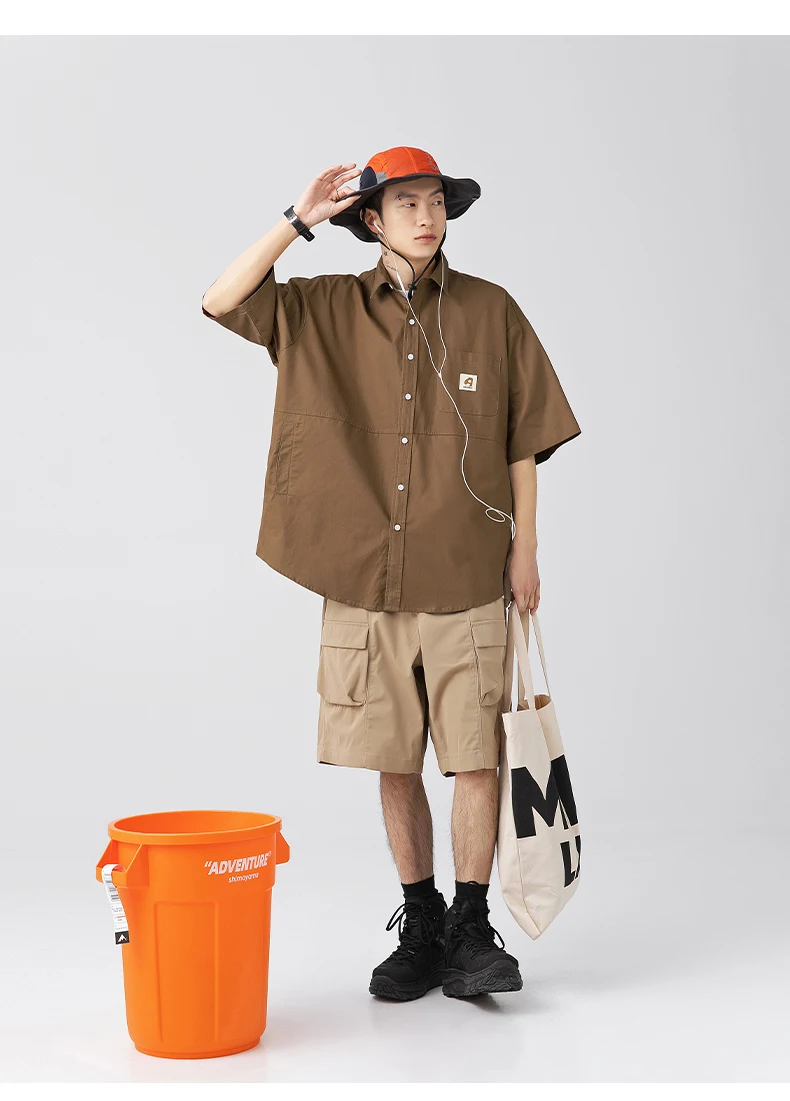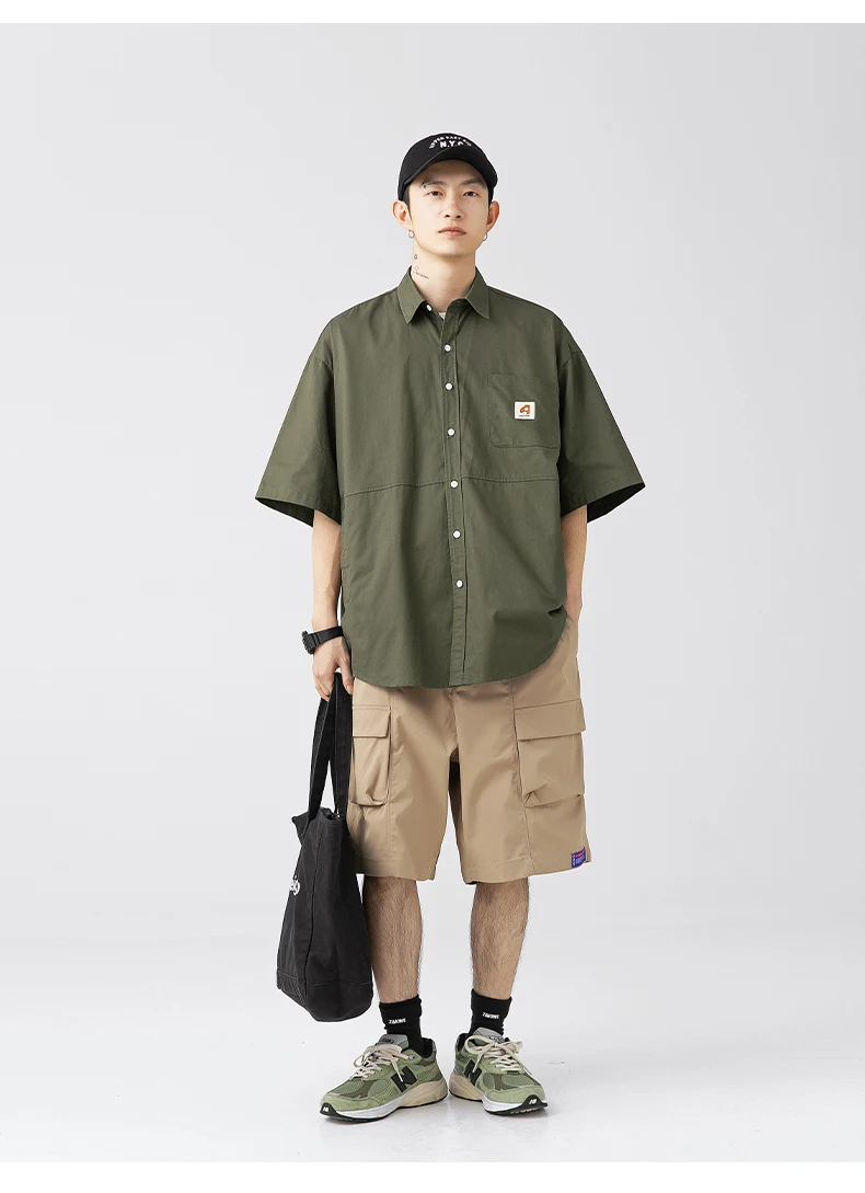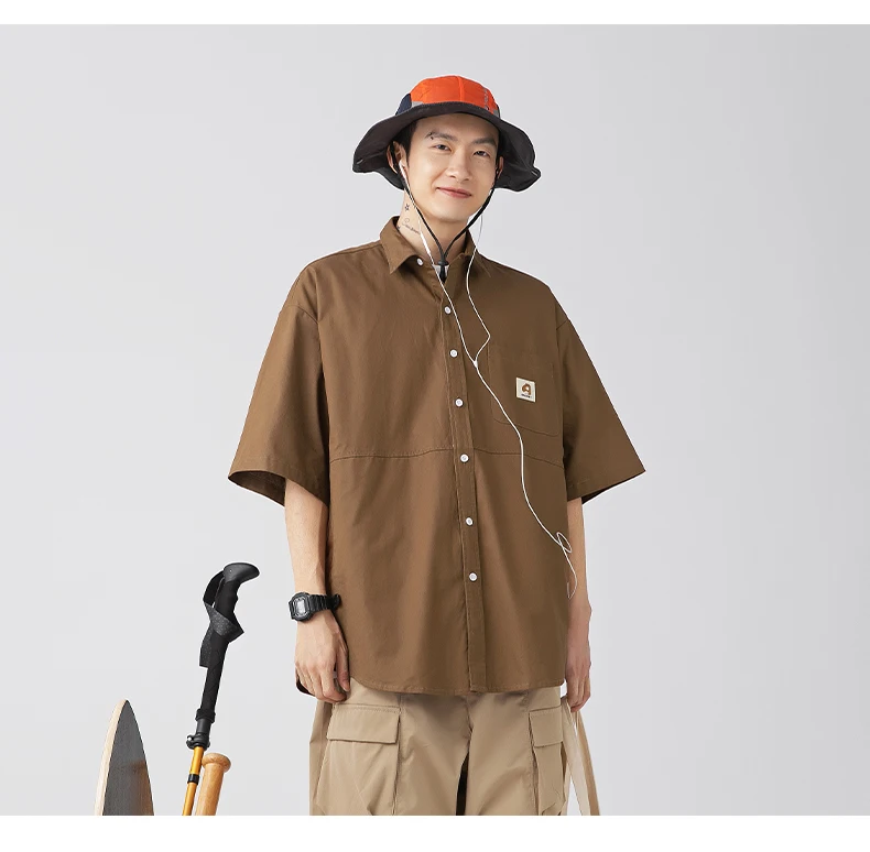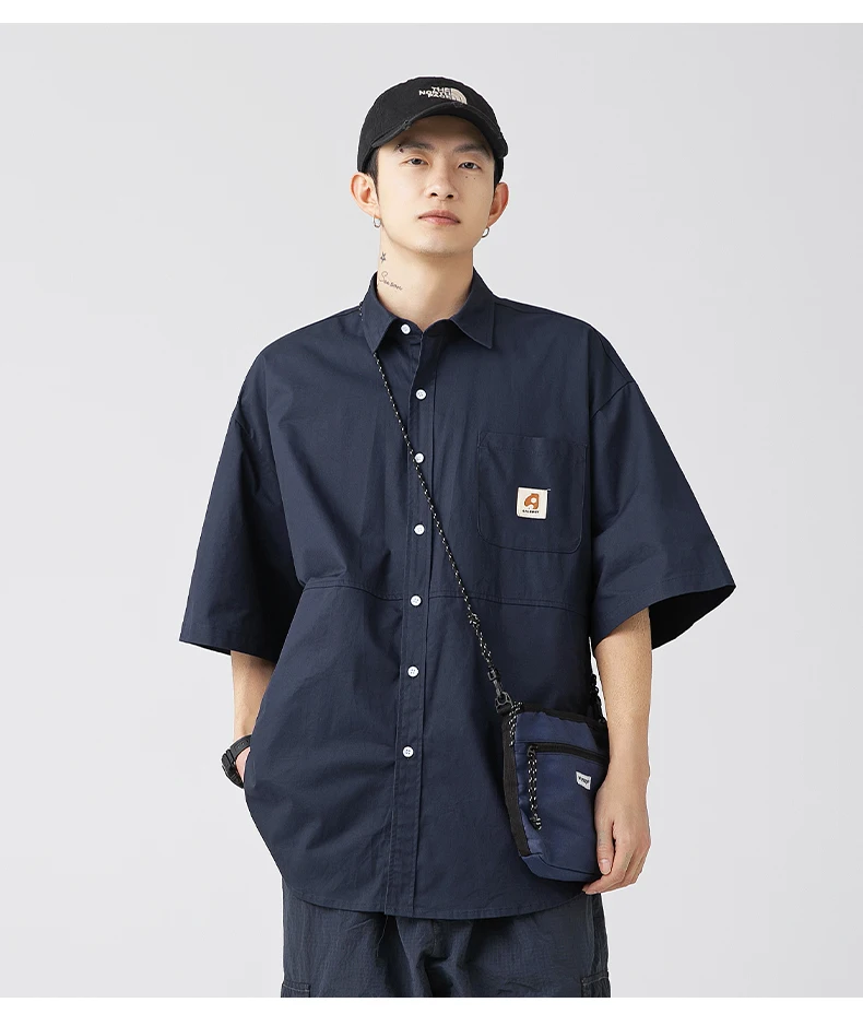 Japanese work clothes short-sleeved shirt Men's spring and summer new loose cotton couple Oversized shirt Street fashion for men and women