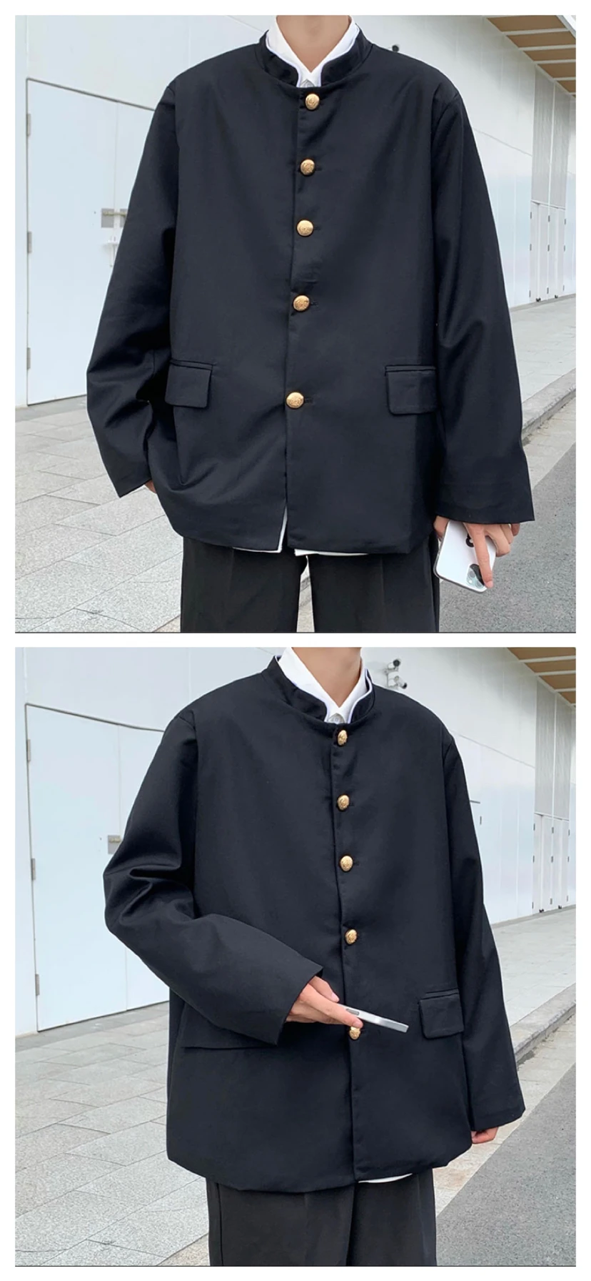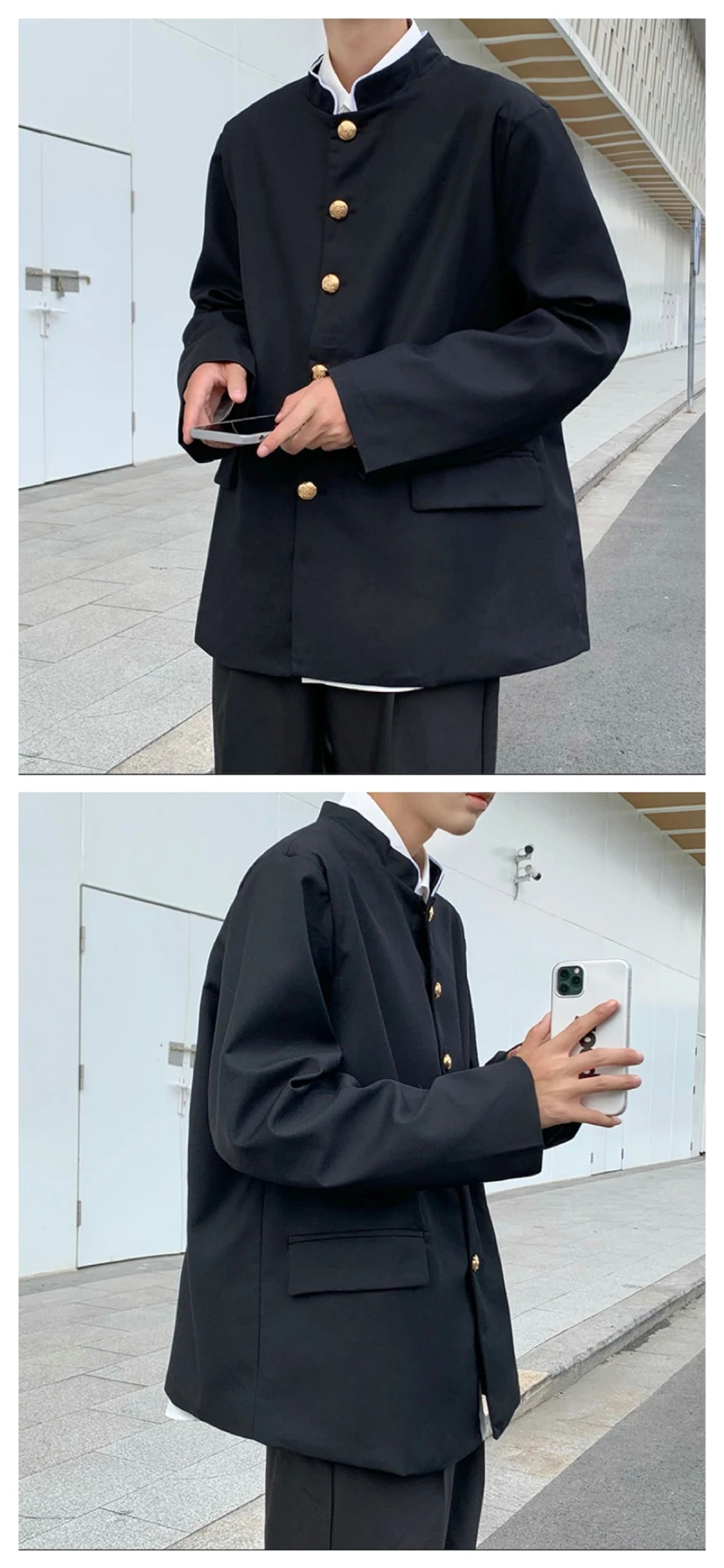 Japan Style School Uniform Jacket Stand Collar Men Women Tunic Suit Jacket DK Costume Black Coat With Nameplate High Version