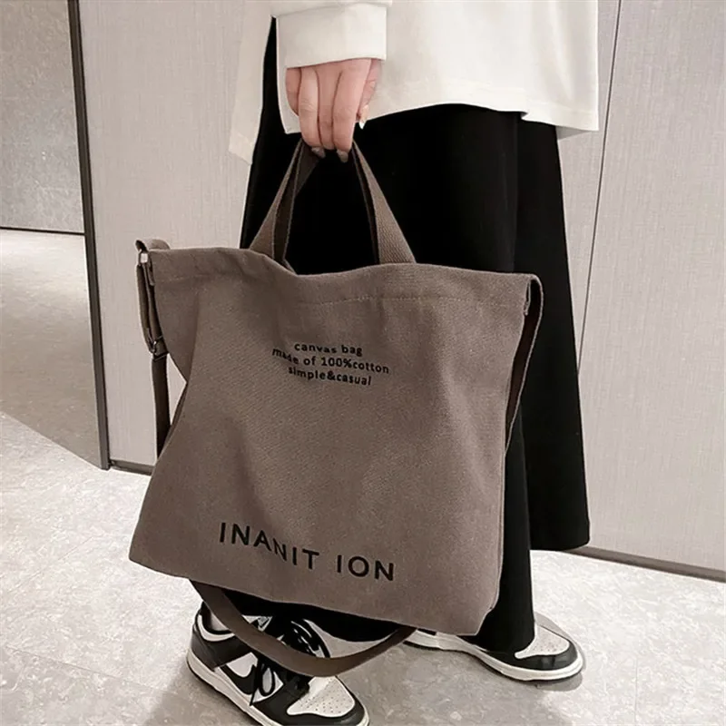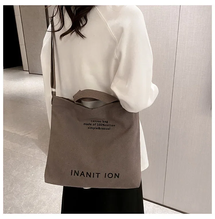 Japanese Canvas Crossbody Bags for Men Women Retro Letter Tote Bag, Trendy Literary Handbag Shoulder Bag for School Work Travel