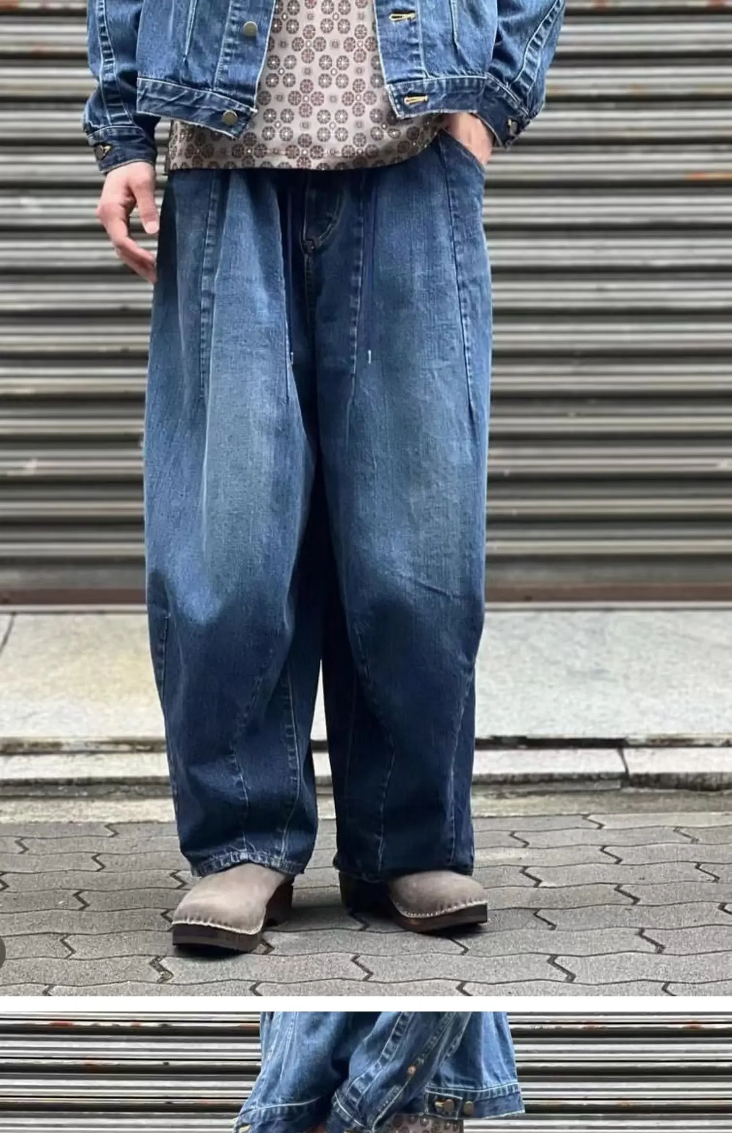 Japanese Retro High-quality Washed Loose Wide Leg Balloon Denim Pants for Men 25ss New Arrival