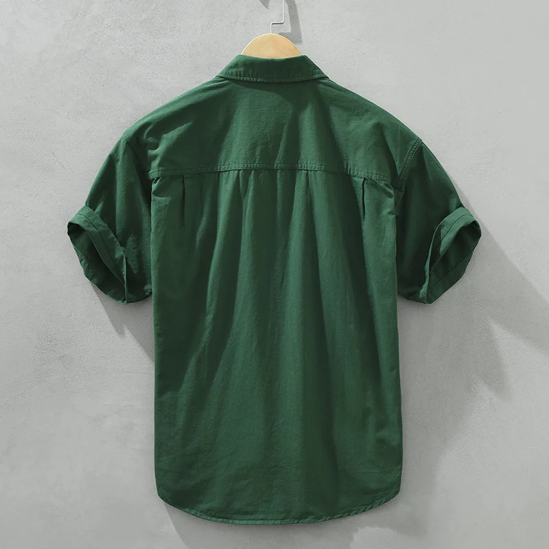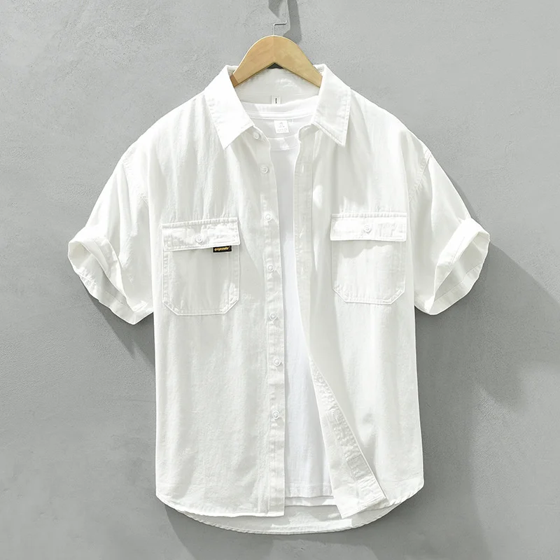 Japanese Retro Men Short Sleeve Cargo Shirt Double Pockets Cotton Uniform Light Casual Work Safari Style Shirts Mens Tops Shirt