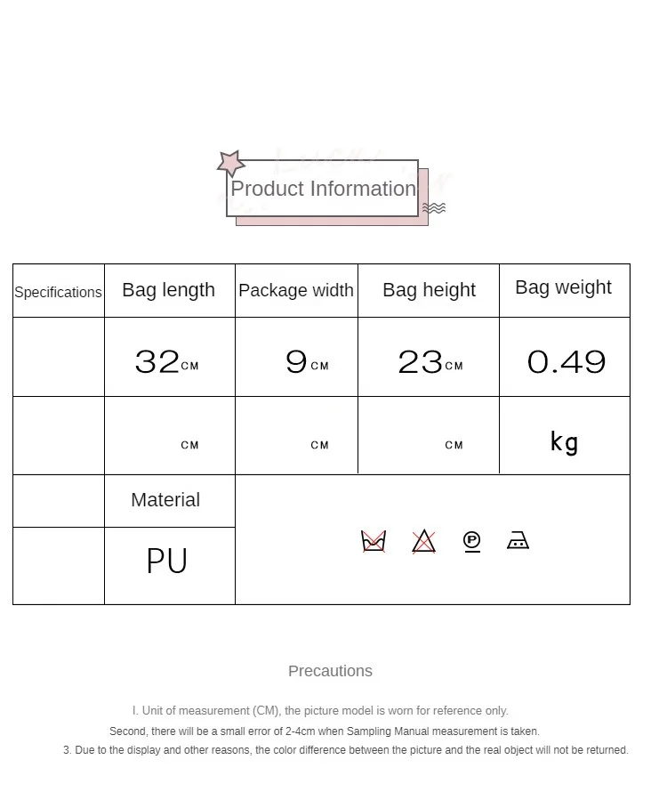 Bag Size: Length 32cm*Height 23cm*9cm (1-2cm erros)