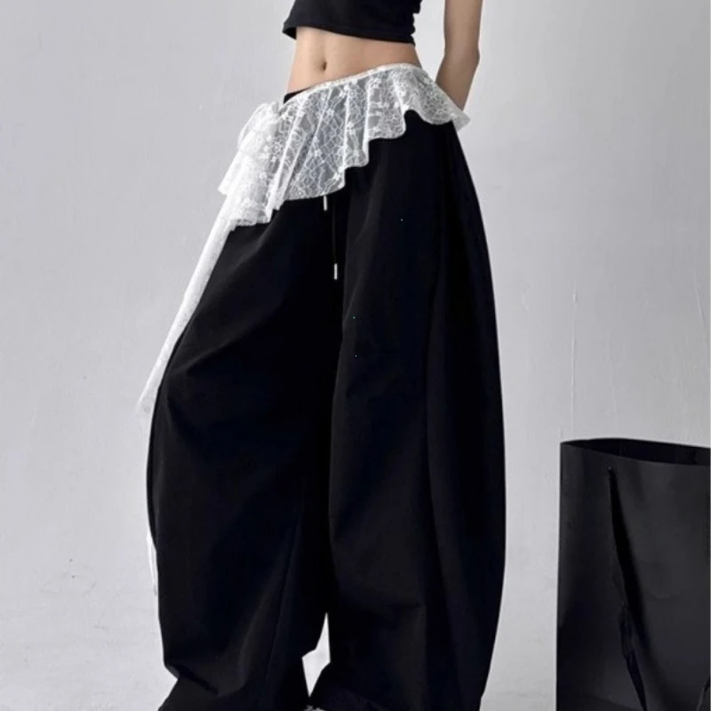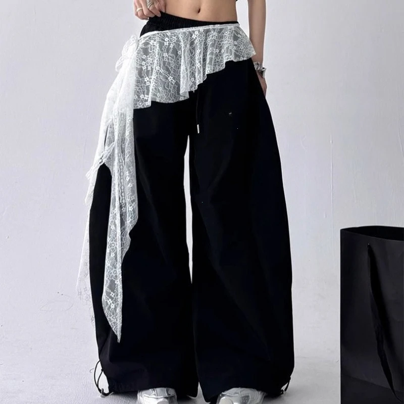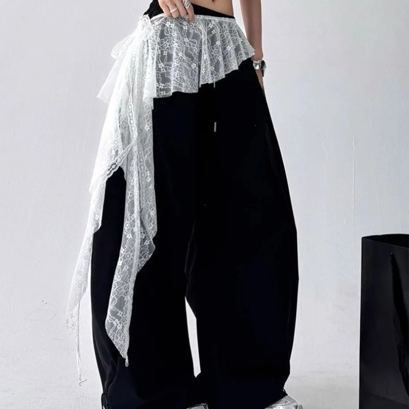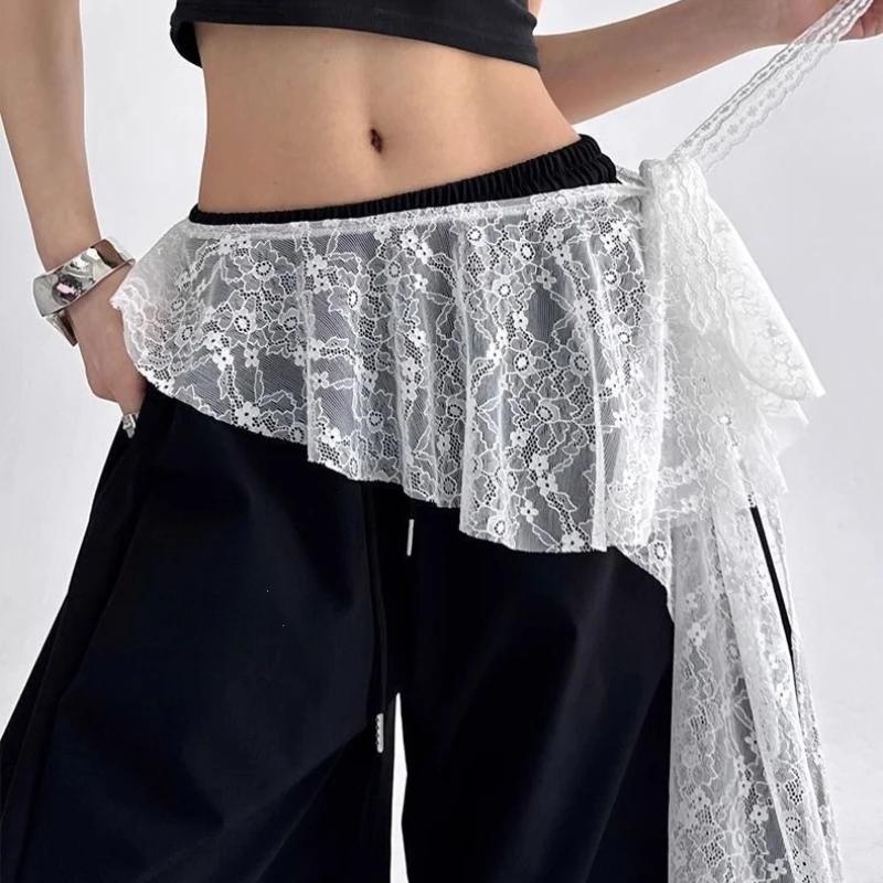 Jeans Pants Decor Embroidered Flower Lace Mini Skirt Irregular See Through Ruched Skirts High Waist Harajuku Pleated Skirts