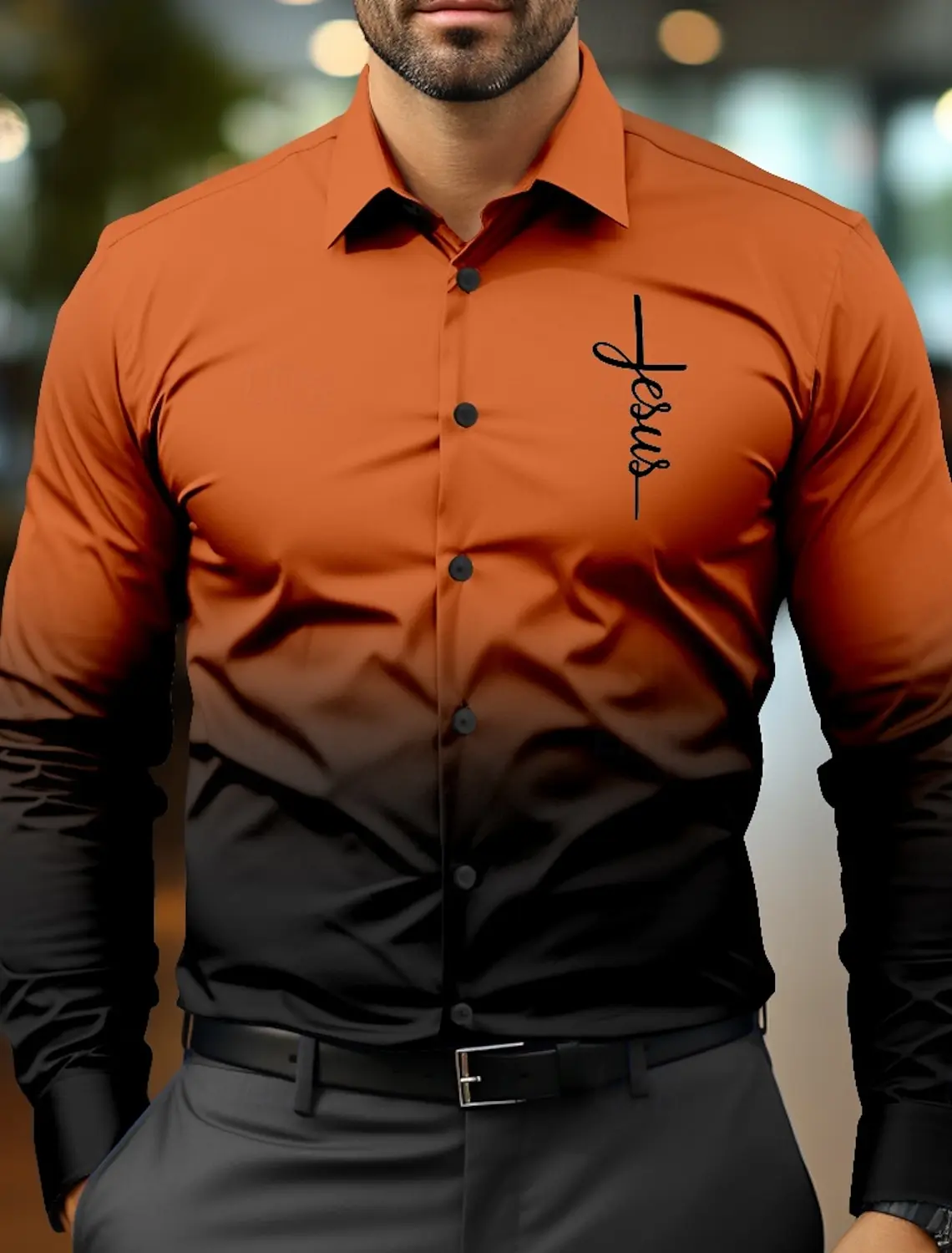 Jesus Business Casual Men's Formal Shirt Button Shirt Long Sleeve Business Daily Autumn Spring Summer 3D Shirt Collar Button