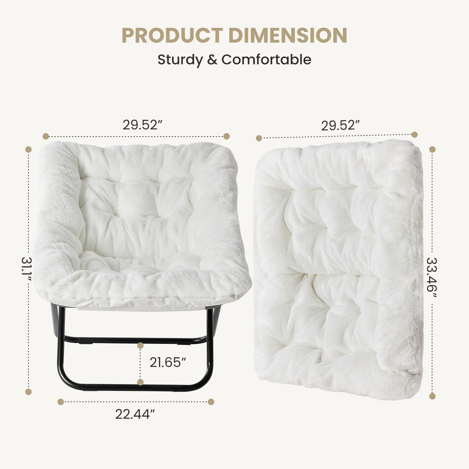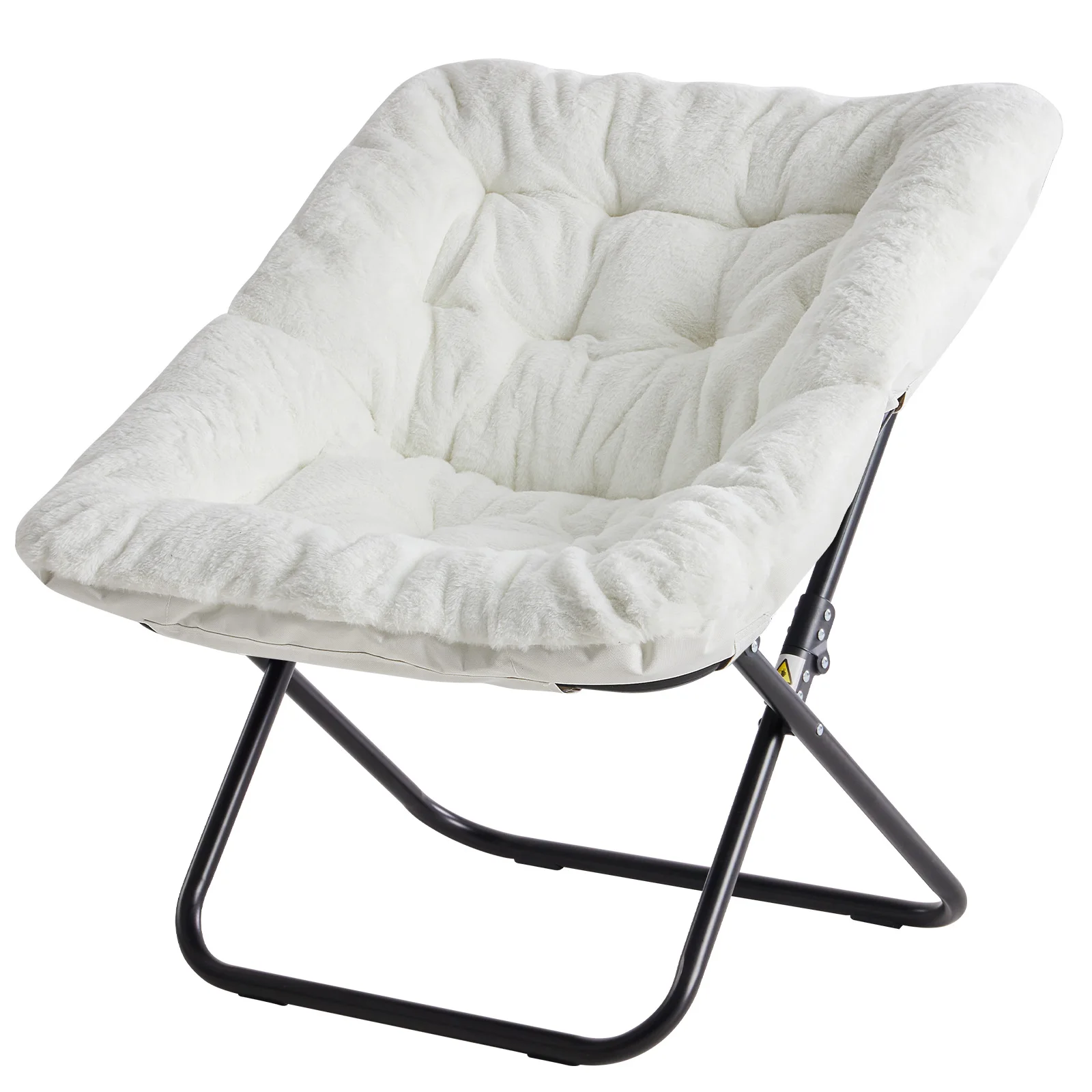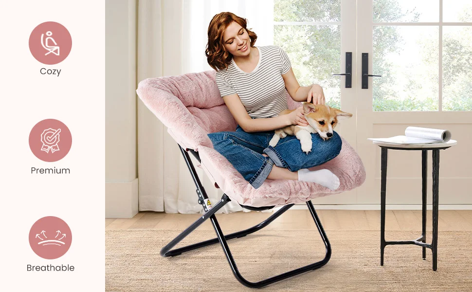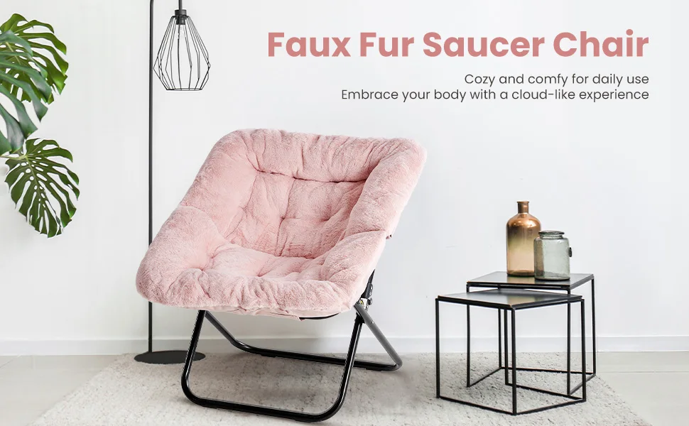 JHK 28IN Cozy Saucer Chairs Soft Faux Fur Large Size Folding Lounge Living Room Padded Seat Metal Frame Reading Chair Furniture