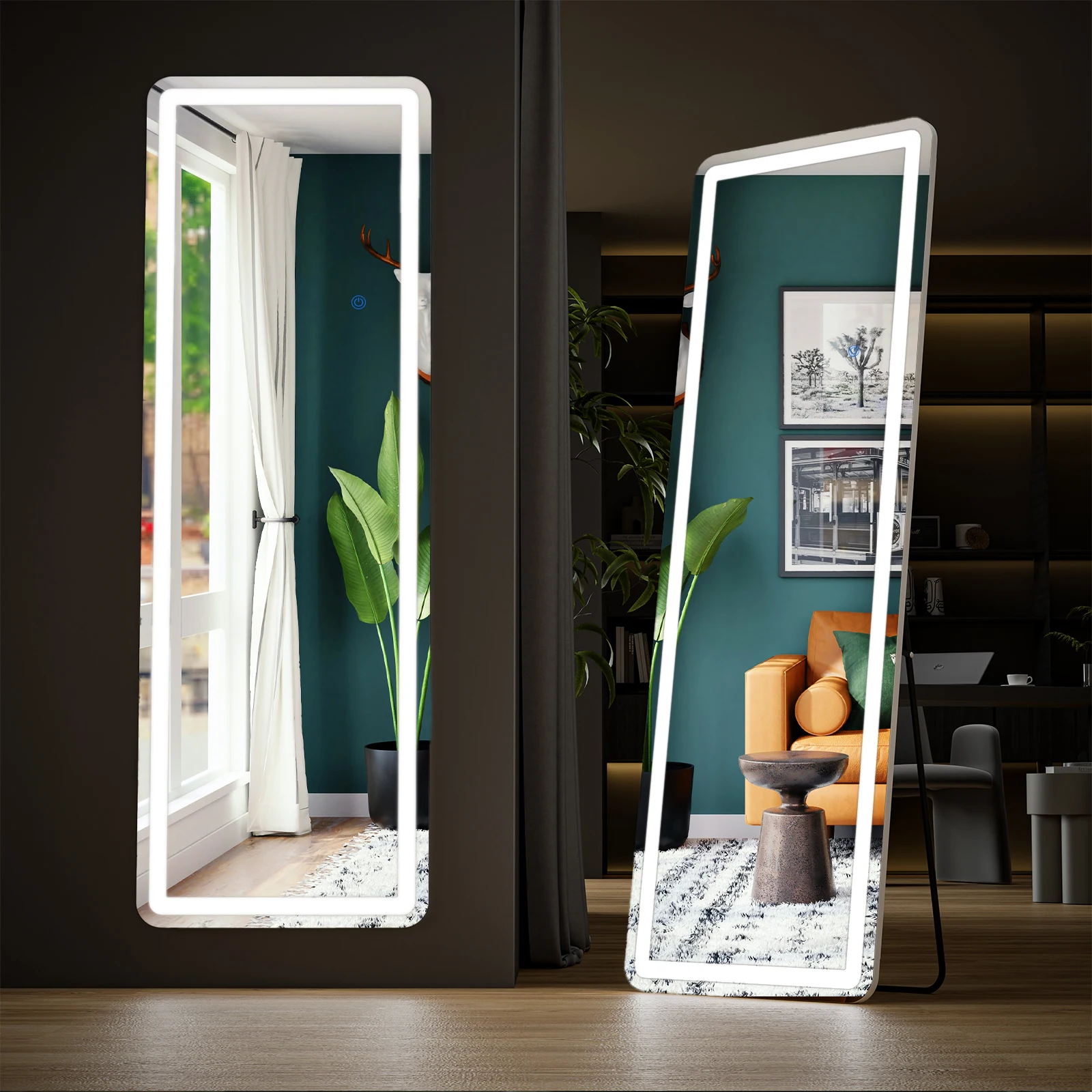 JHK Led 64"x21" Full Length Mirror Standing Hanging or Wall-Mounted Mirrors with Stand Aluminum Alloy Frame For Living Room