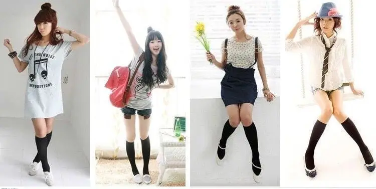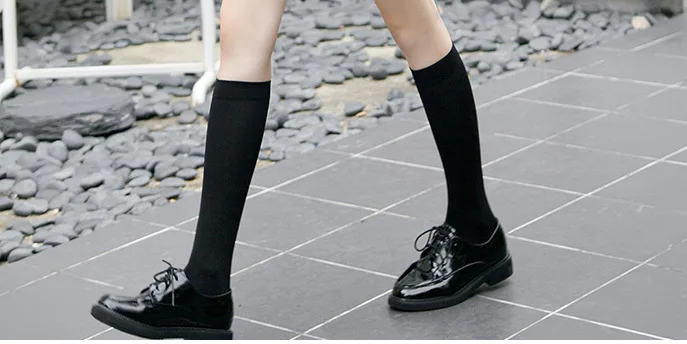 JK Women Black White Knee High Lolita Socks Lady Girls Over Knee Cute Long Sock Thin Breathable Solid Color Stockings For Women