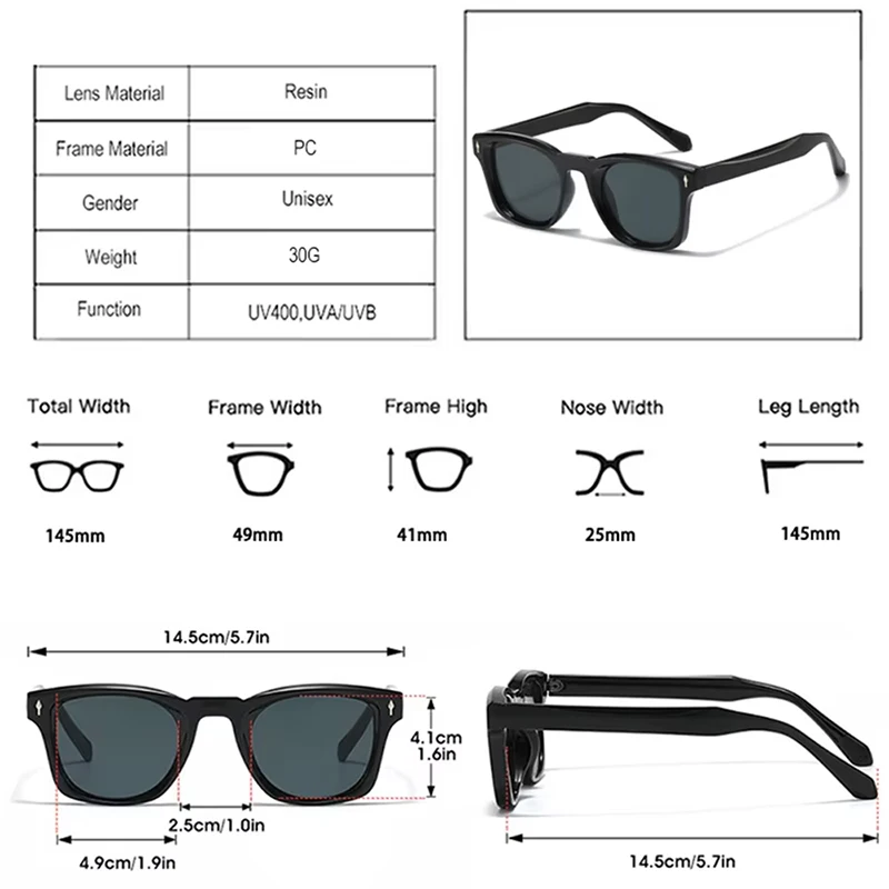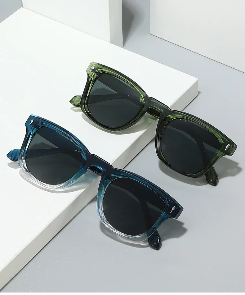 JNPCXI Retro Rivets Square Sunglasses Women Fashion Gradient Shades UV400 Men Green Black Sun Glasses