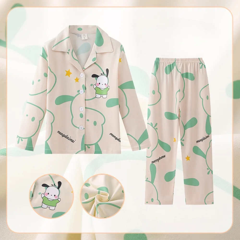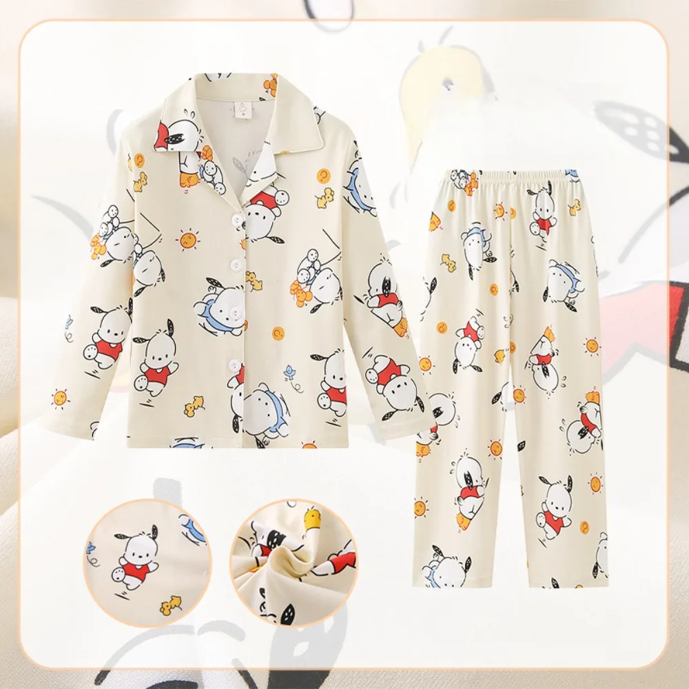 Kawaii Pochacco Children Pajama Sets Lovely Cartoon Print Collar Kids Sleepwear Set Soft Comfortable Boys Girls Pajamas