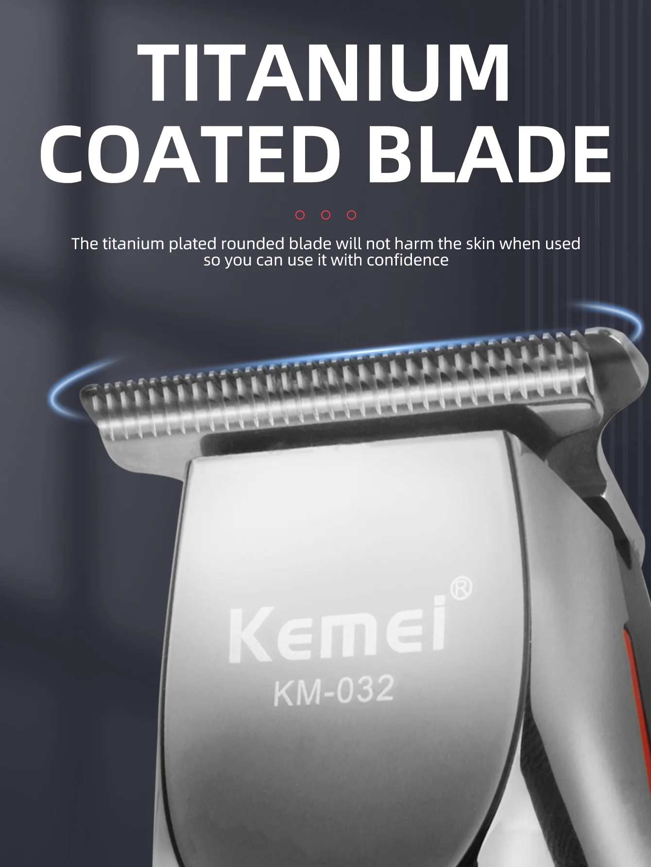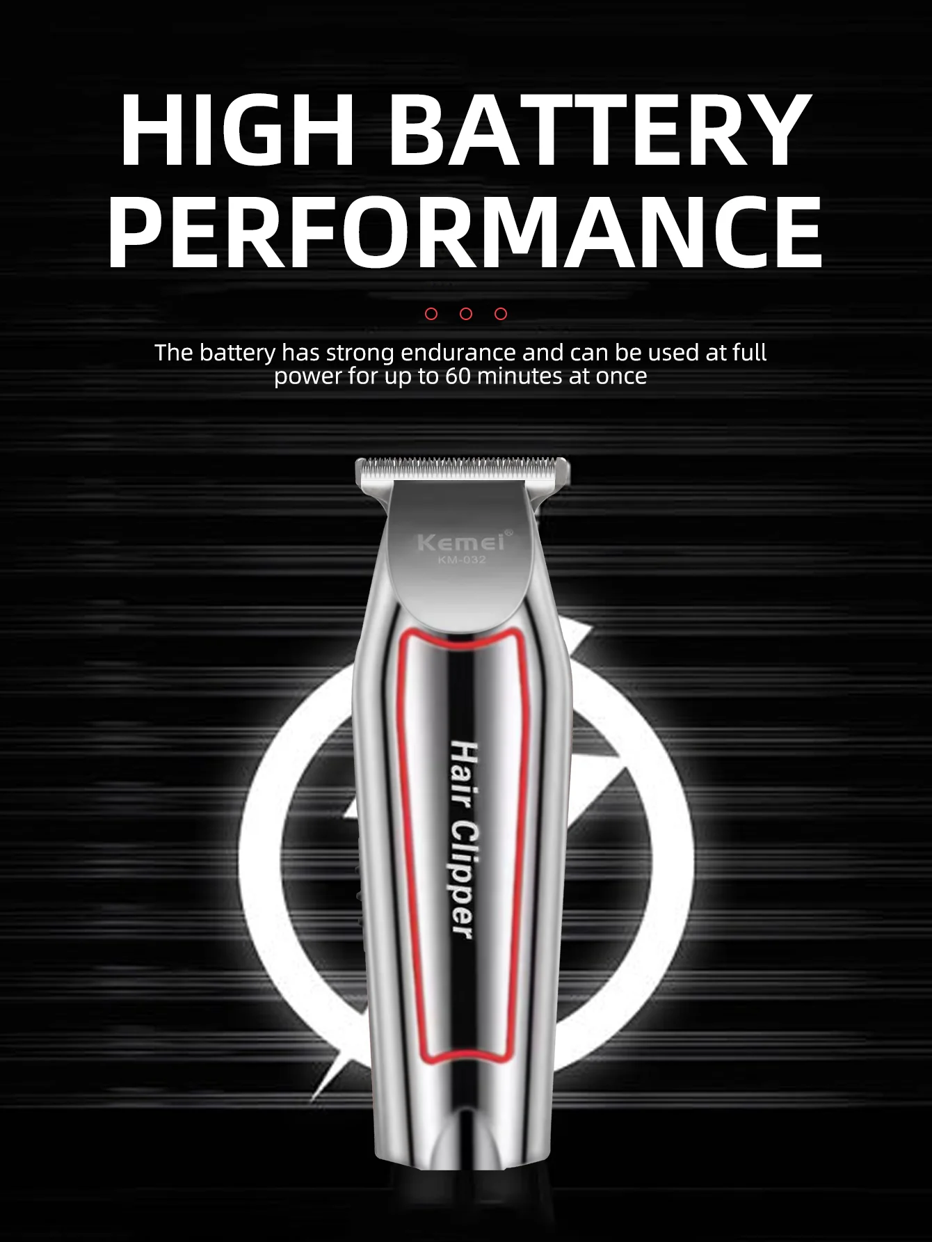 Kemei Professional Alloy Hair Trimmer Electric Beard Trimmer Rechargeable Hair Clipper Haircut Machine for Men KM-032