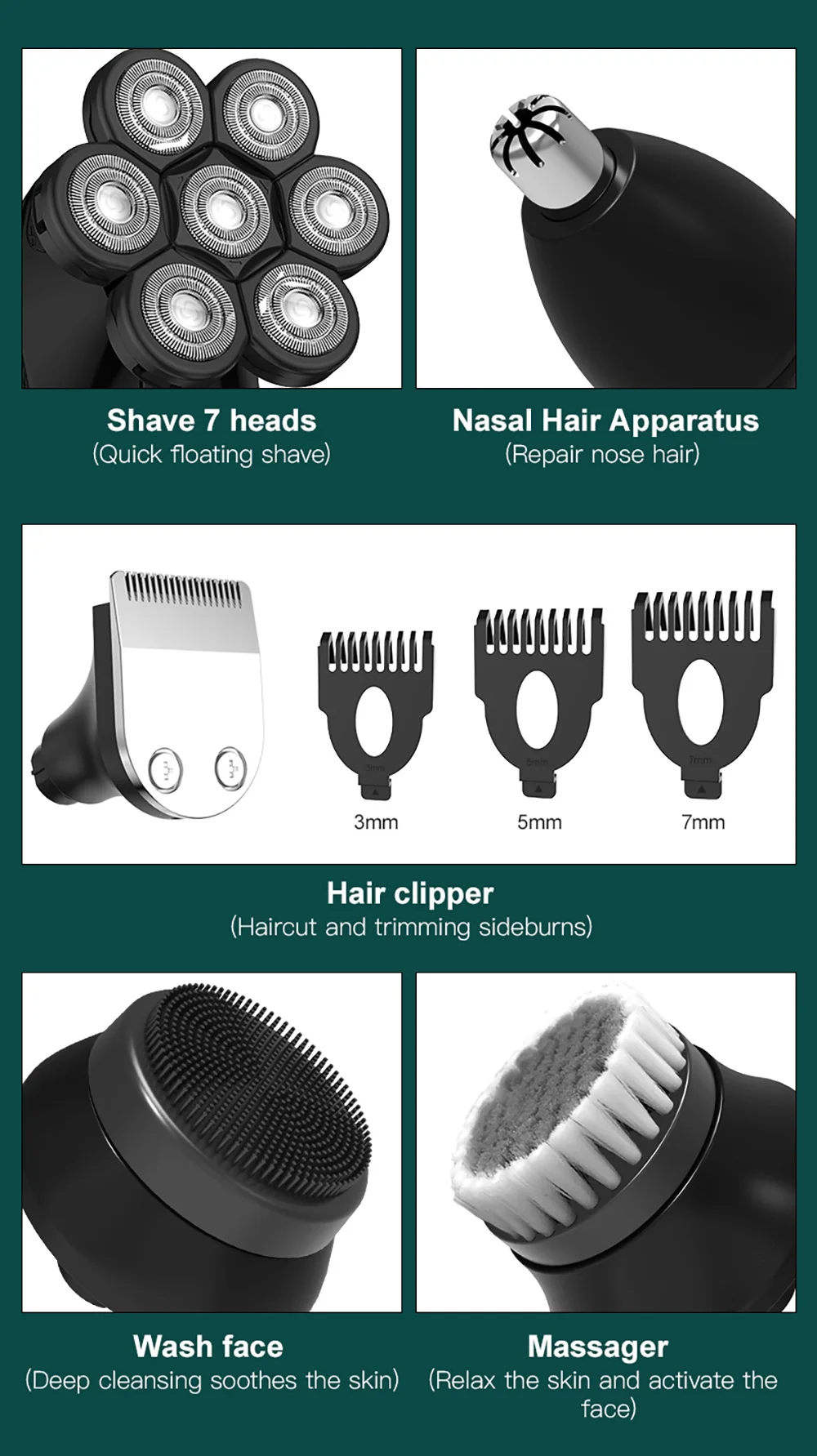 *Seven-head shaver head: for Quick Bald Men shaving
