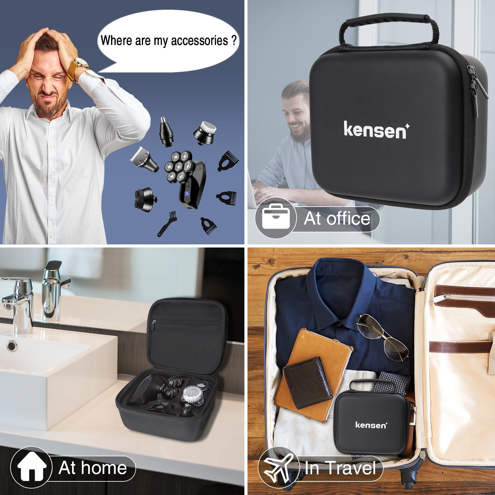 This KENSEN Professional head shaver grooming kit is more intuitive and secure when using. Professional design, stylish appearance, whether used at home or traveling, this shaver is the best choice for yourself or as a gift!