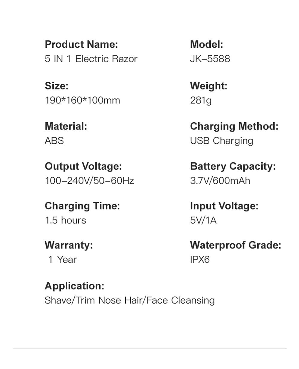 Name: kensen 5 In 1 Electric Shaver