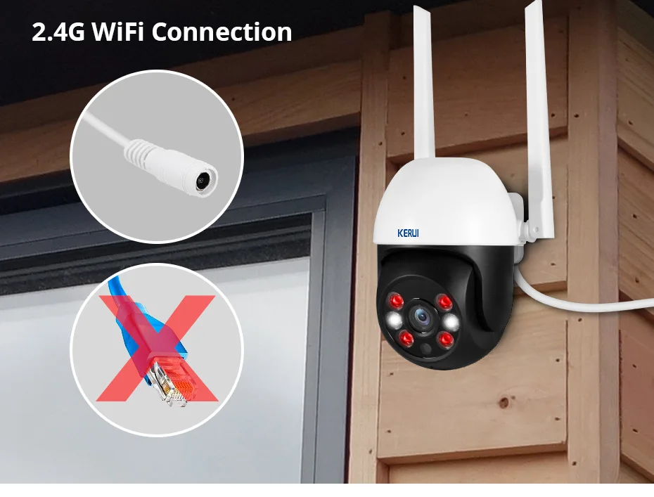 KERUI Outdoor Camera is waterproof (IP65) and enables outdoor use. camera works perfectly both inside and outside your house, even in harsh weather conditions.