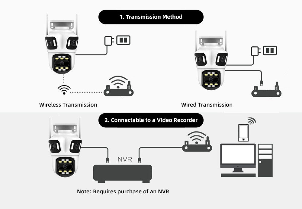 KERUI Icsee Outdoor PTZ 6K WIFI IP Camera Home Security Triple Lens Camera CCTV Video Surveillance With Triple Screens