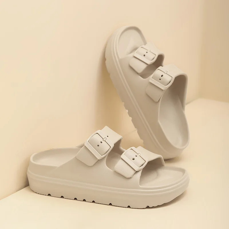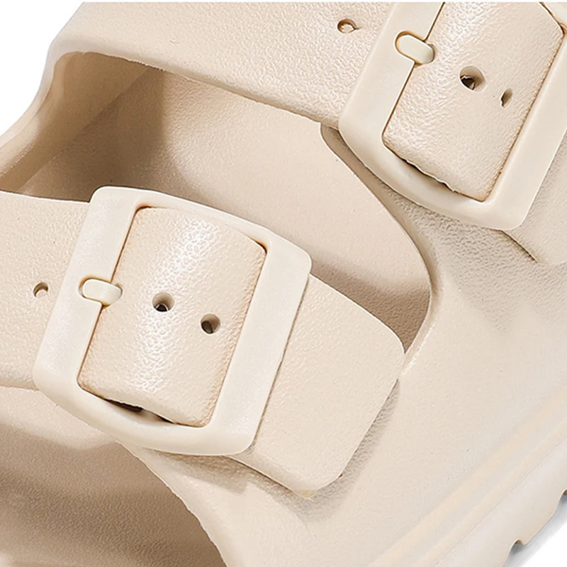 Kidmi New Summer Platform Women's Slippers Outdoor Double Buckle Embellished Sandals Non-slip Breathable Soft-soled Beach Shoes
