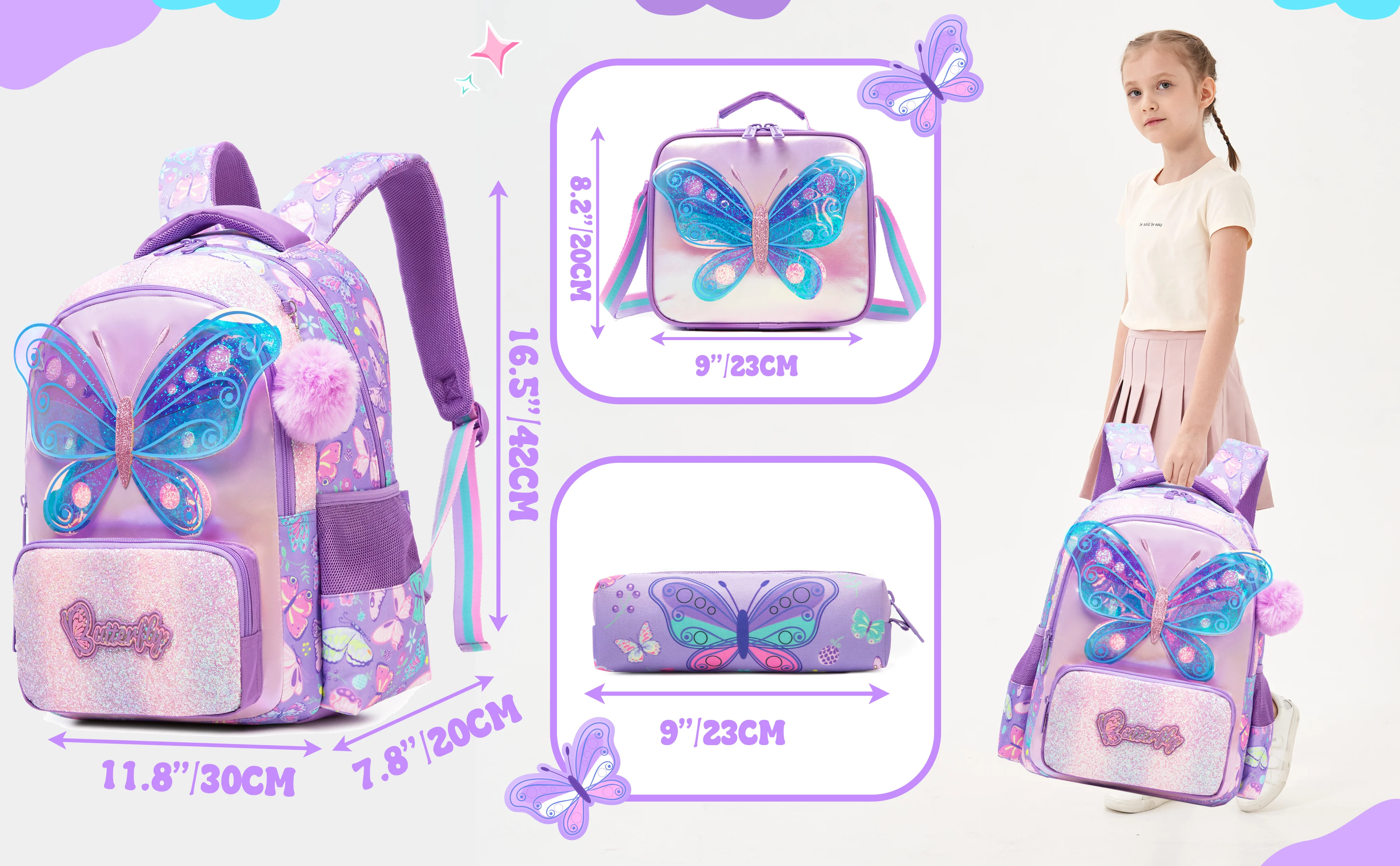 [Backpack Set Size]Backpack:11.8*7.5*16.5", Lunch Bag:9.84*3.5*9.06", Pencil Case:8.27*2.75*2.75"