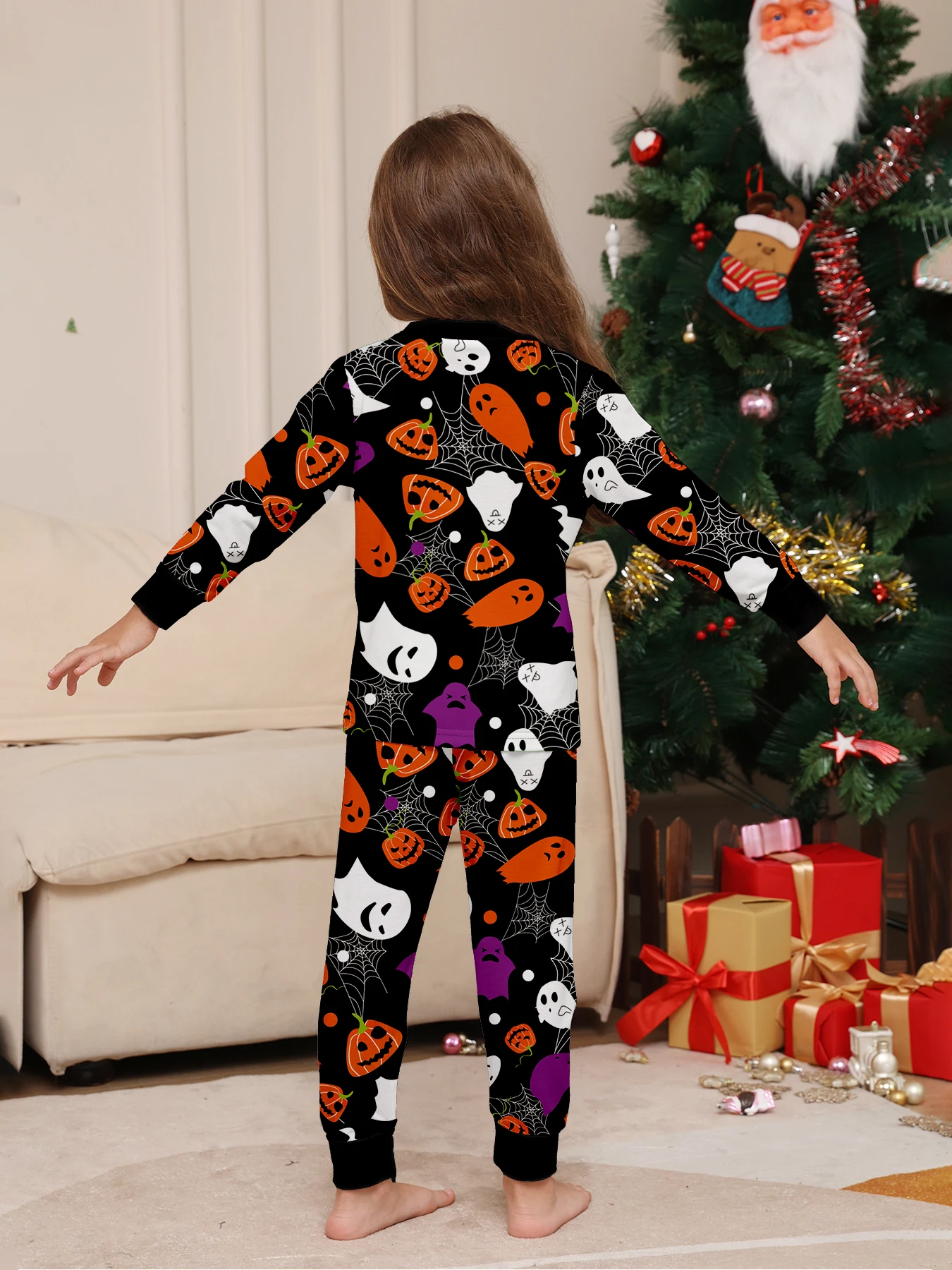 Kids Halloween Pajamas Set - All - Over Colorful Pumpkin & Ghost Print Sleepwear