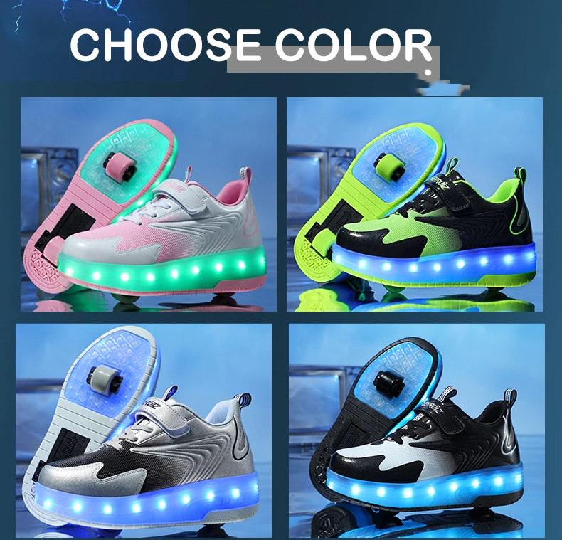 Kids Sneakers USB Recharge Light Up Skates Shoes Boys Girls Casual Skateboarding Shoe Roller Skate Outdoor Sports Shoes With LED
