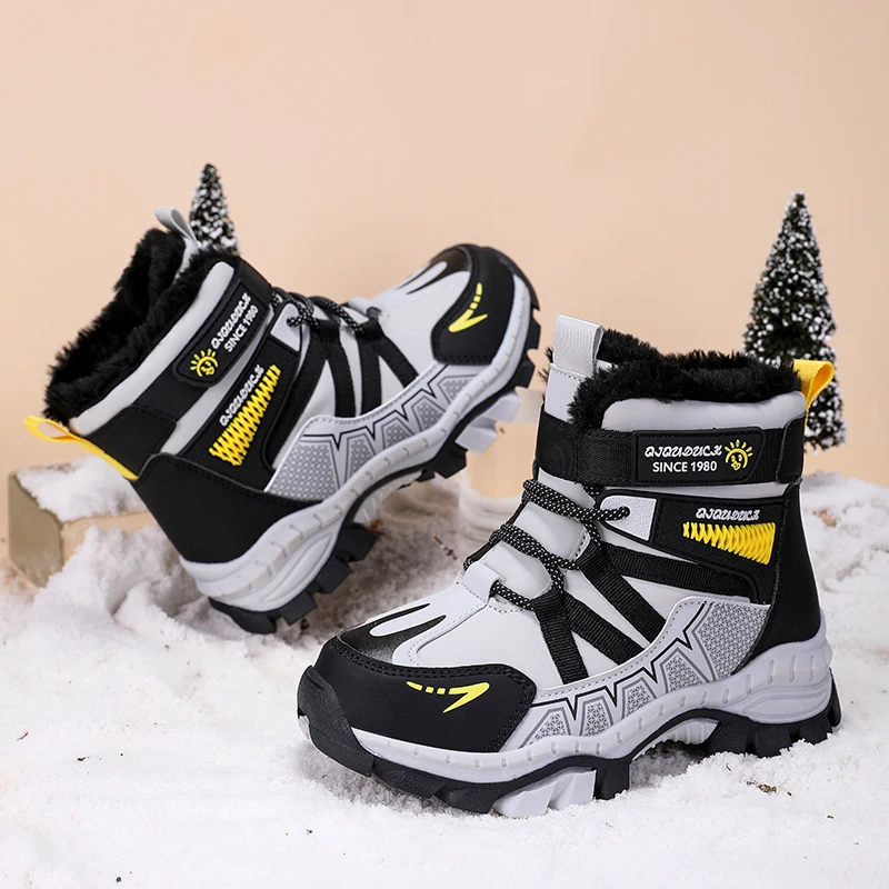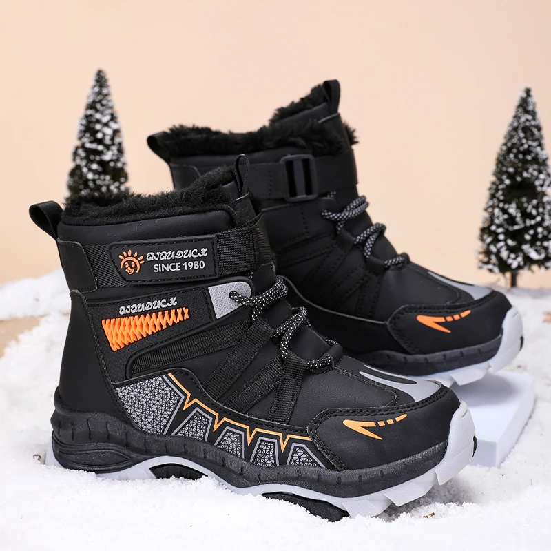 Kids Snow Boots Winter Fashion High Top Warm Plush Comfortable Anti Slip Stable Walking Shoes Boys Outdoor Sneakers Size 30-40