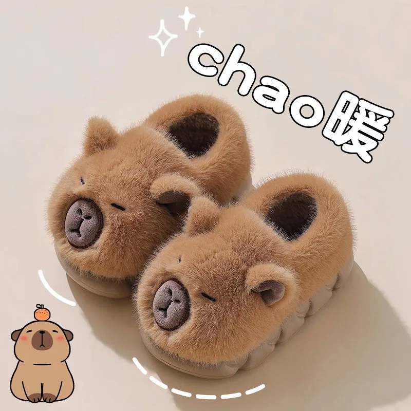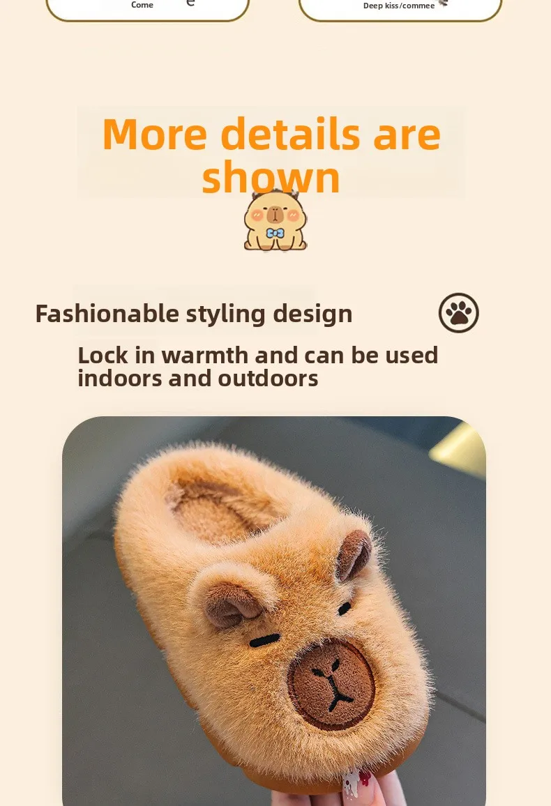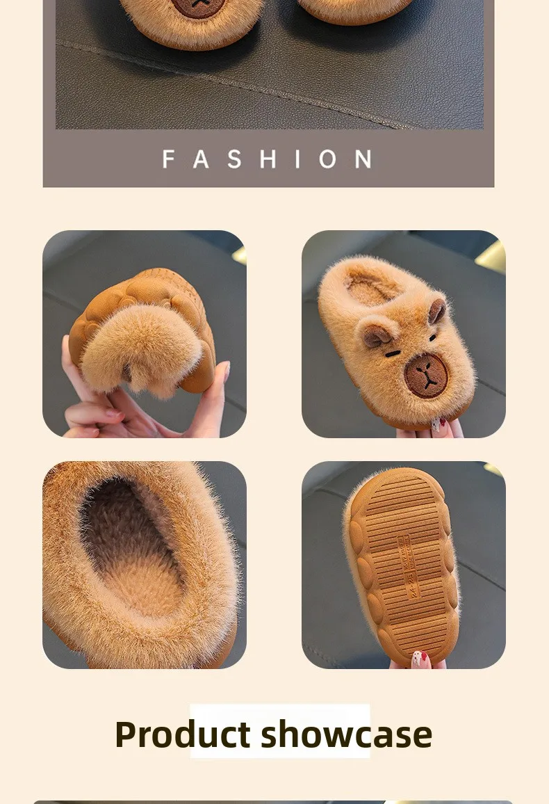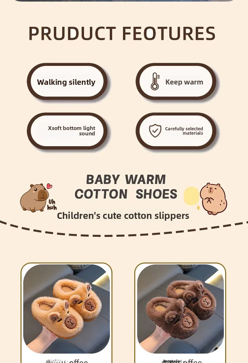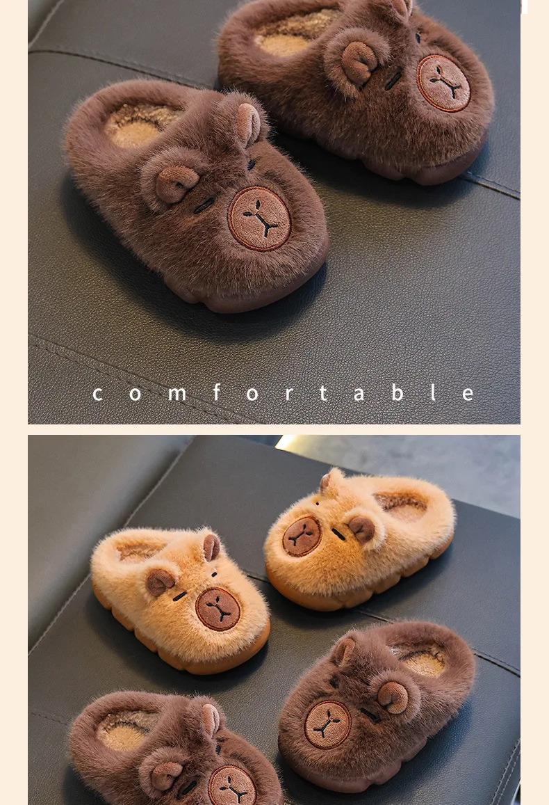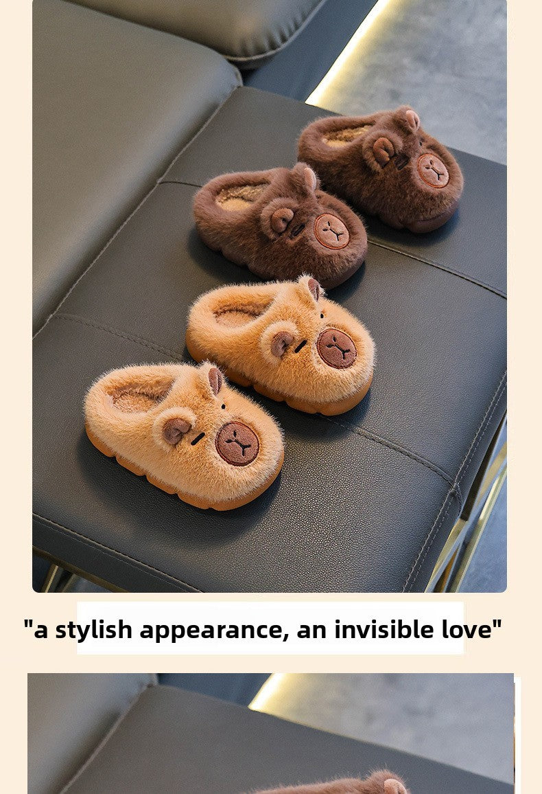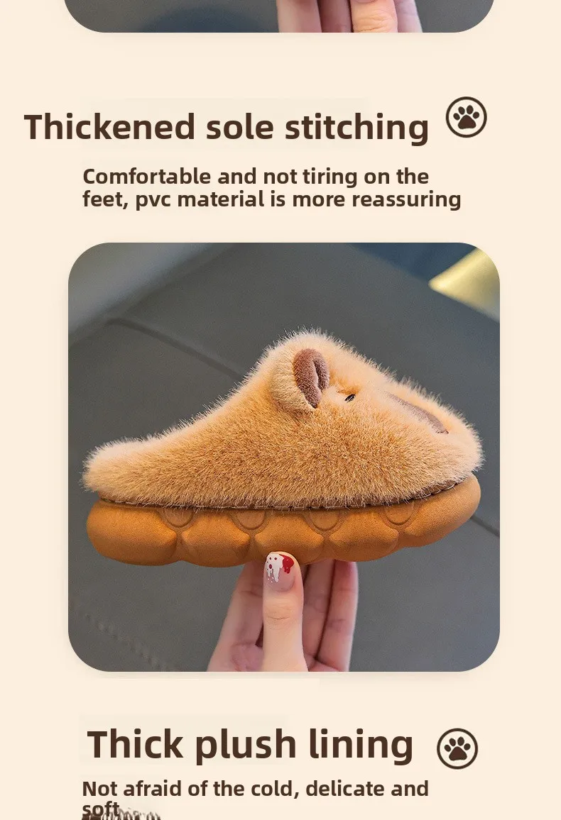Kids Winter Warm Cotton Slippers Cute Capybara Slip-On Shoes for Boys & Girls Soft Non-Slip Soles Lightweight Easy Wear Closure