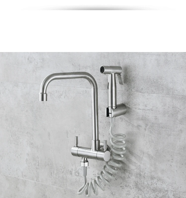 Kitchen Faucet 304 stainless steel into the wall horizontal cold faucet spray set bidet nozzle double control faucet XT-180