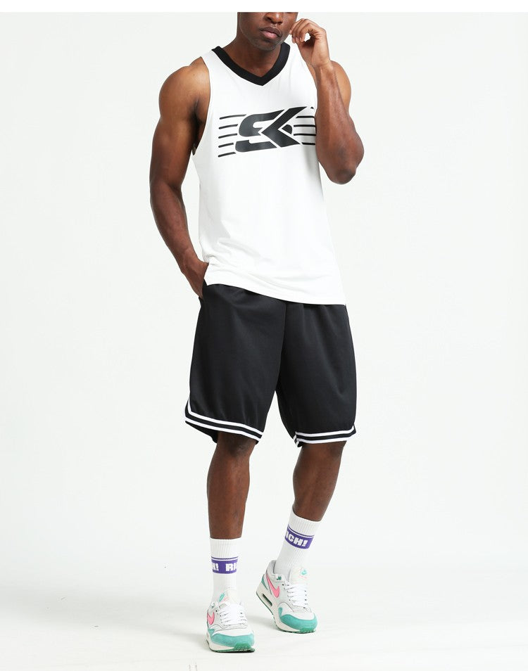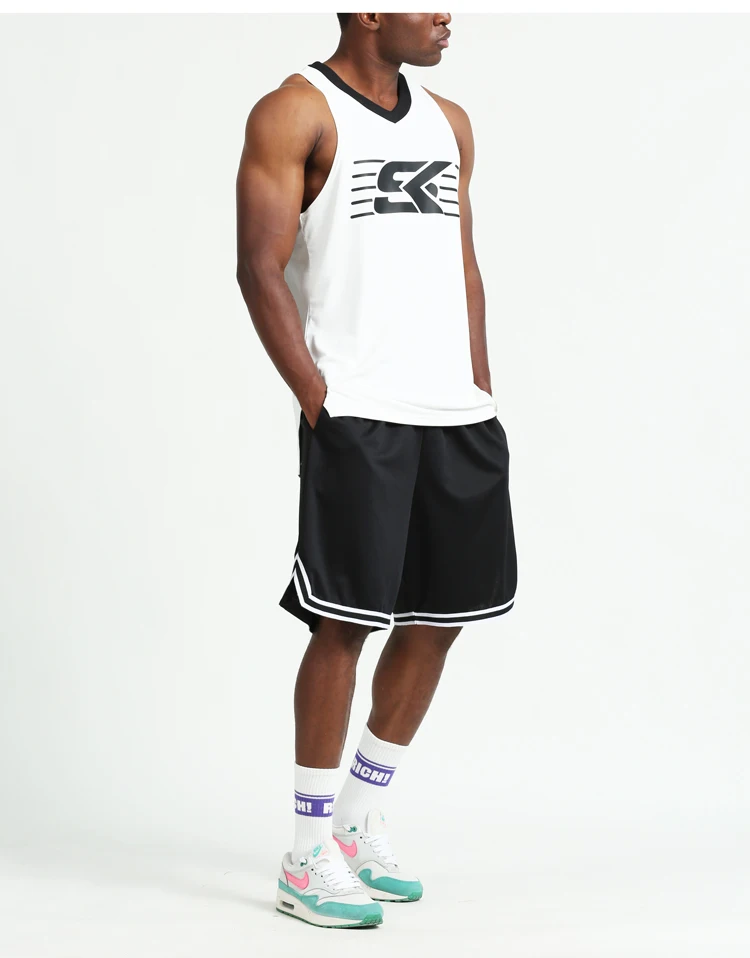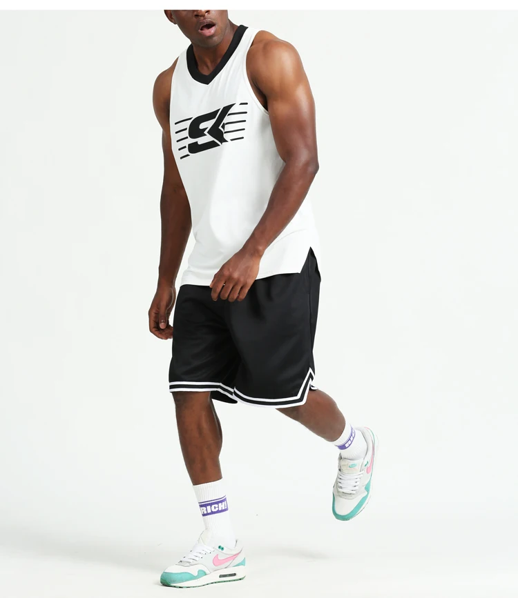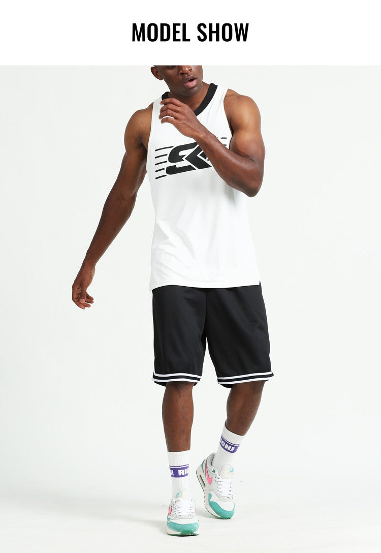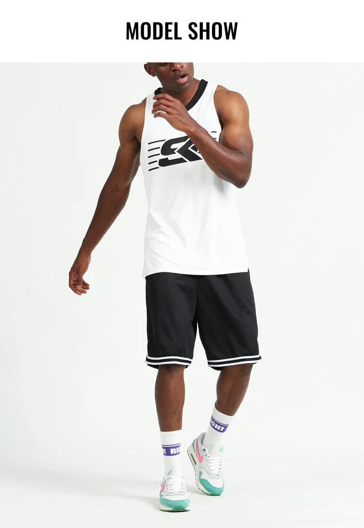 Knee Length Basketball Shorts Men Striped Loose Running Sport Gym Dry Fit Mesh Breathable Fitness Training Workout Bottom Male
